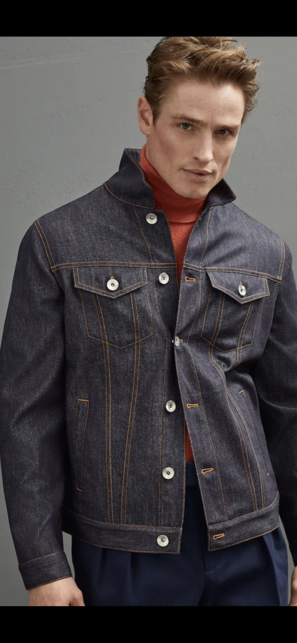 Культовый стиль куртки с четырьмя карманами становится благороднее за счет ценных материалов Brunello Cucinelli. Изысканный шерстяной деним — это очень легкая и комфортная ткань. Это идеальные свойства для носки изделия в межсезонье. Куртка завершается такими типичными деталями, как нагрудные кармашки, металлические пуговицы и контрастные строчки. Крой модели является стандартным,подкладка с лёгким утеплителем.