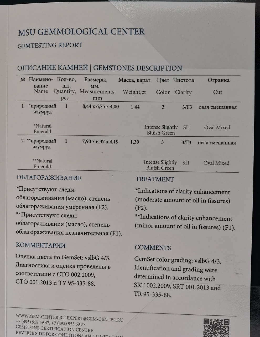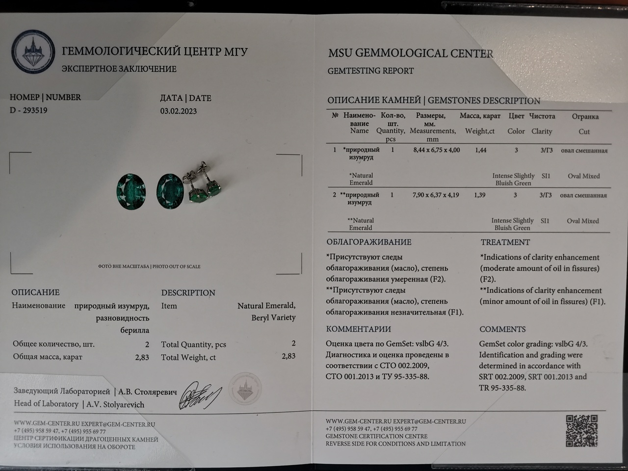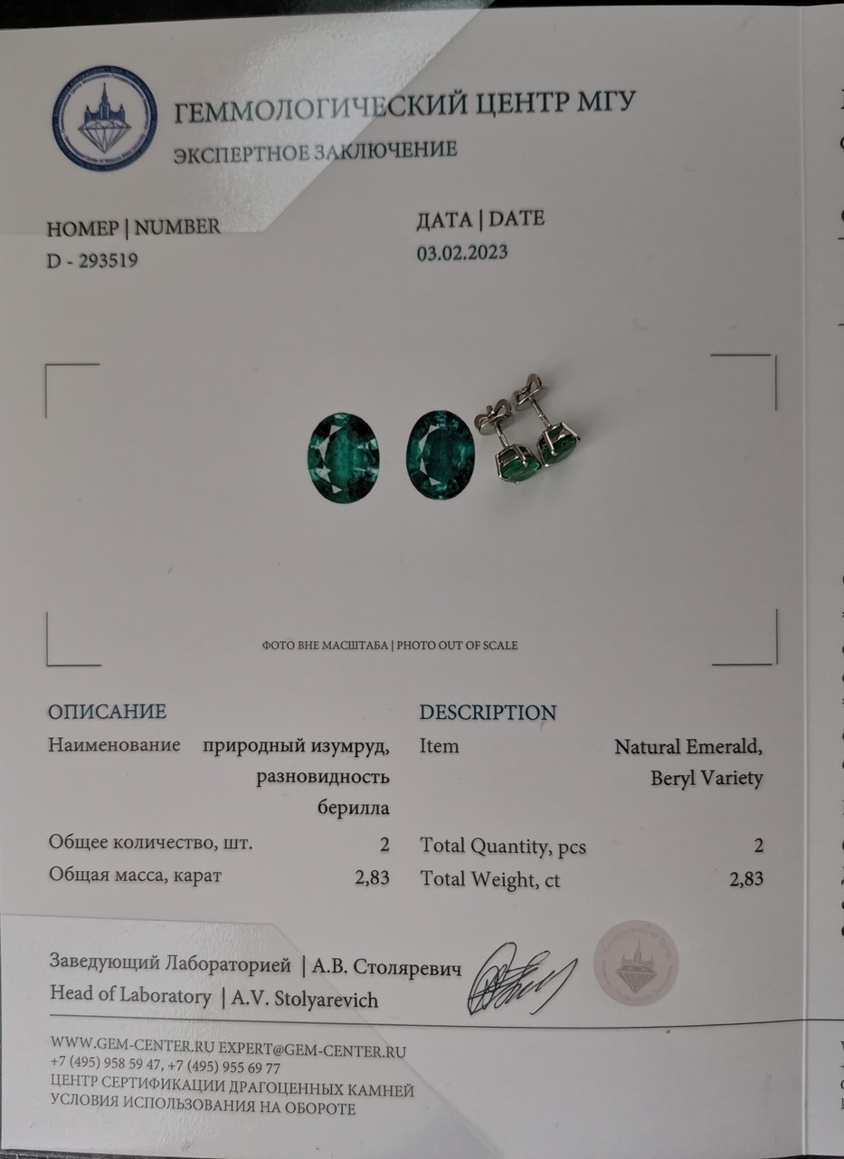 Золотые пуссеты с природными изумрудами 2.83 к.Мгу
