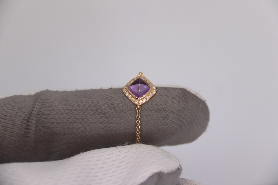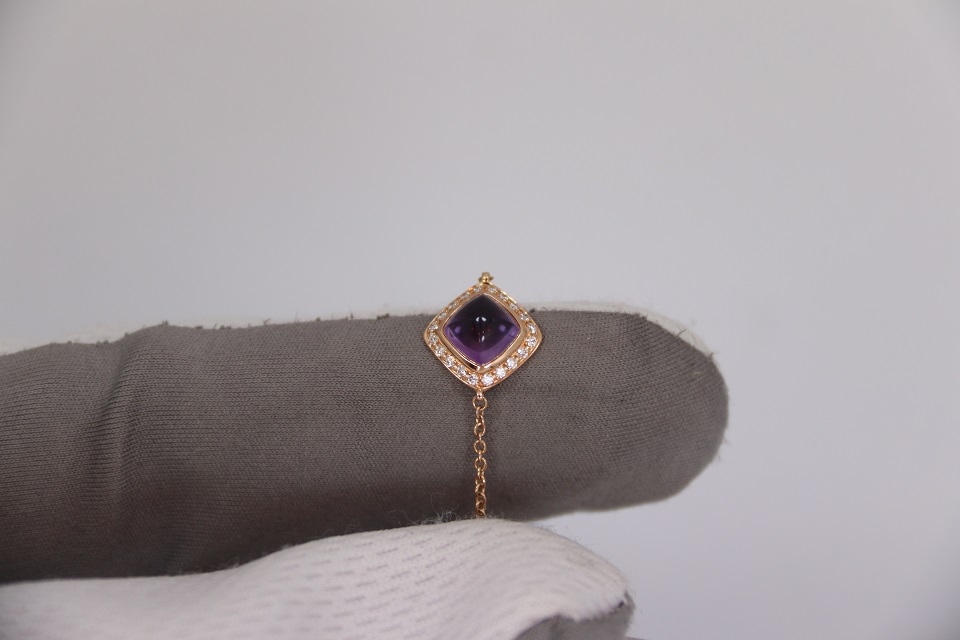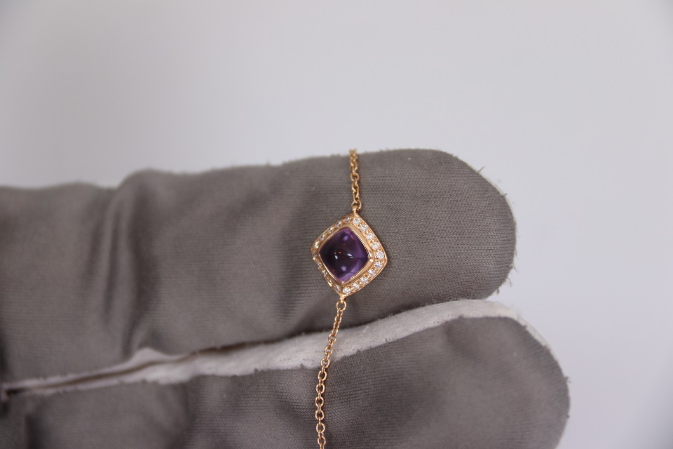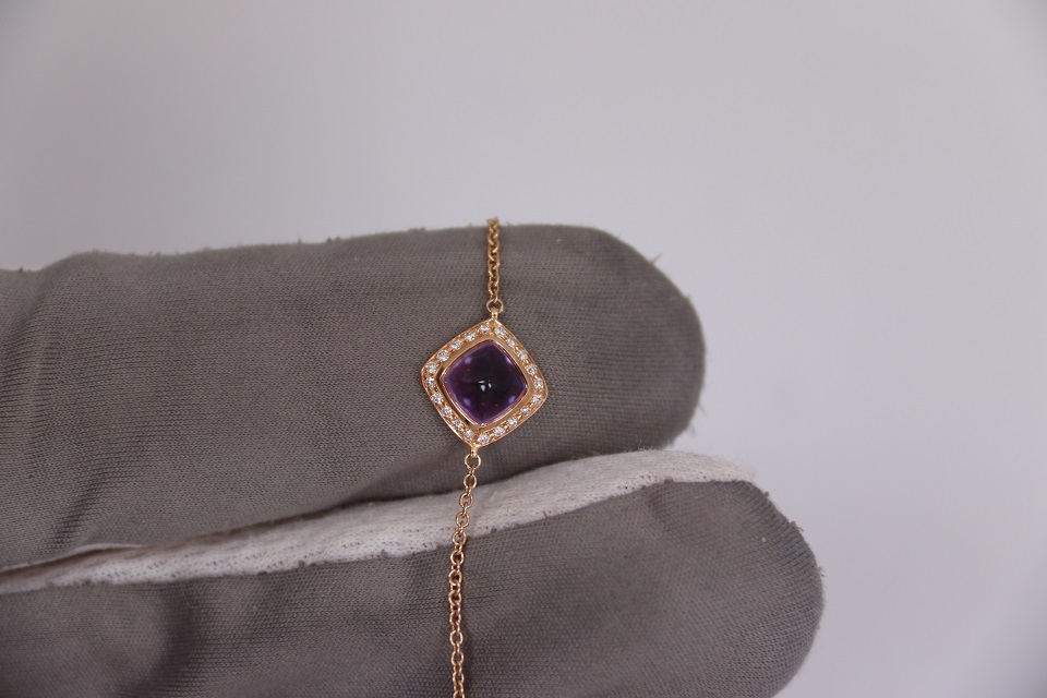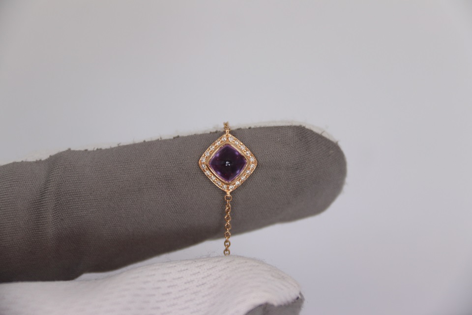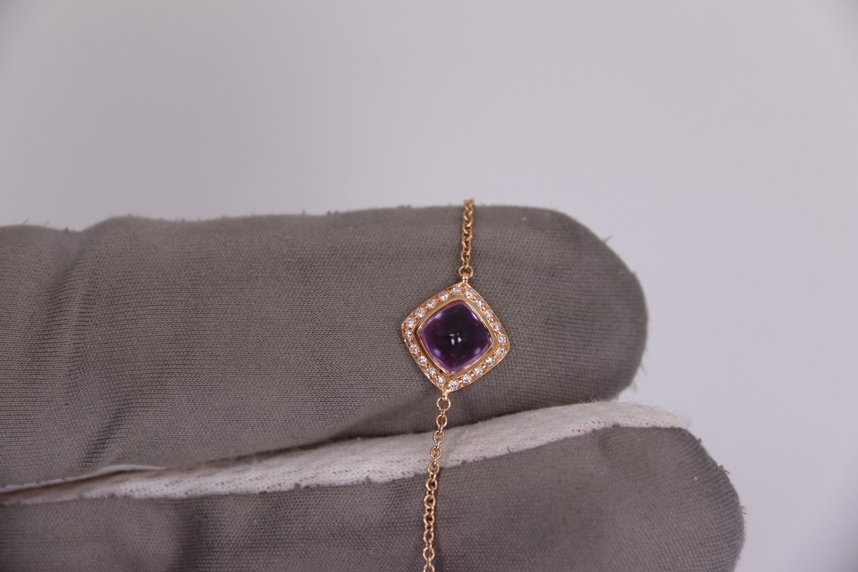 Неспешно продается новый женский золотой браслет из 18к розового золота, с бриллиантами и аметистовым кабошоном