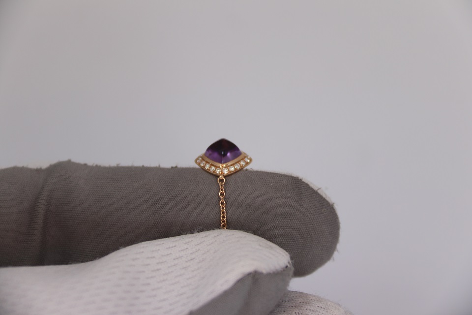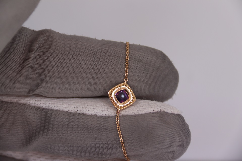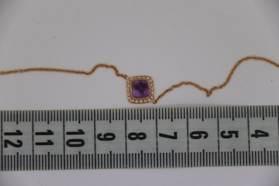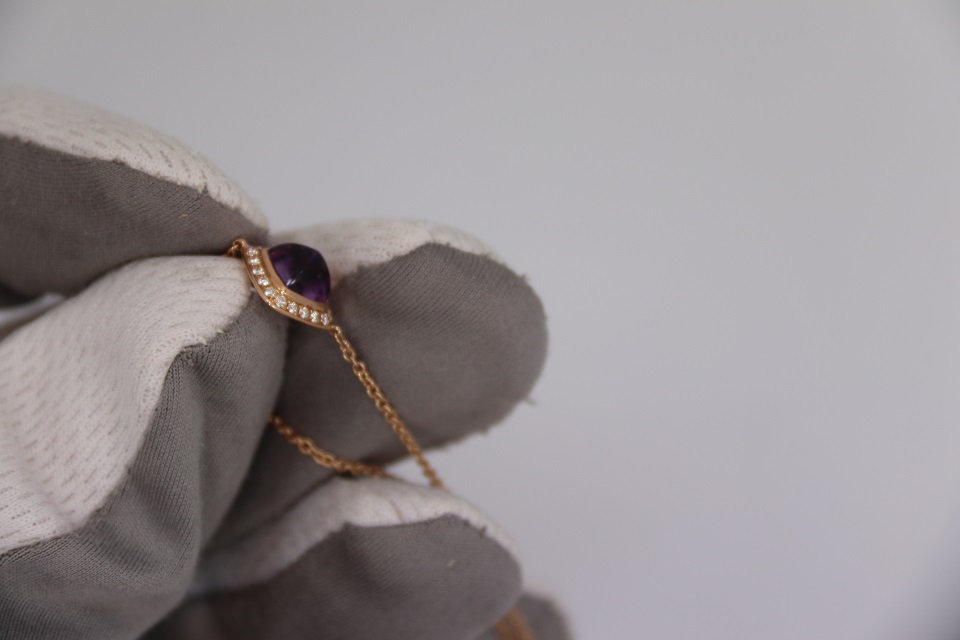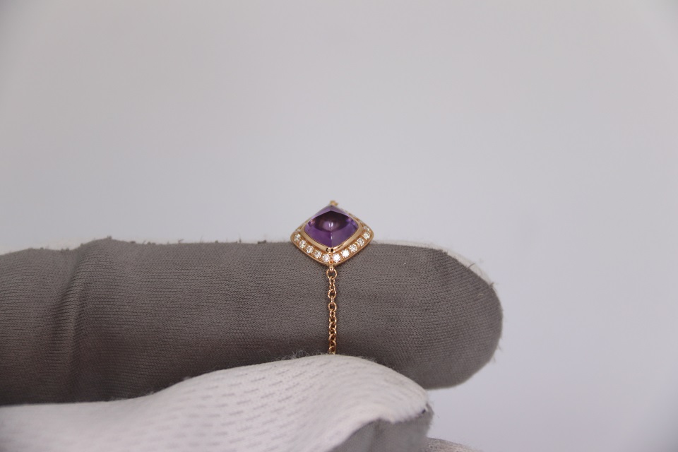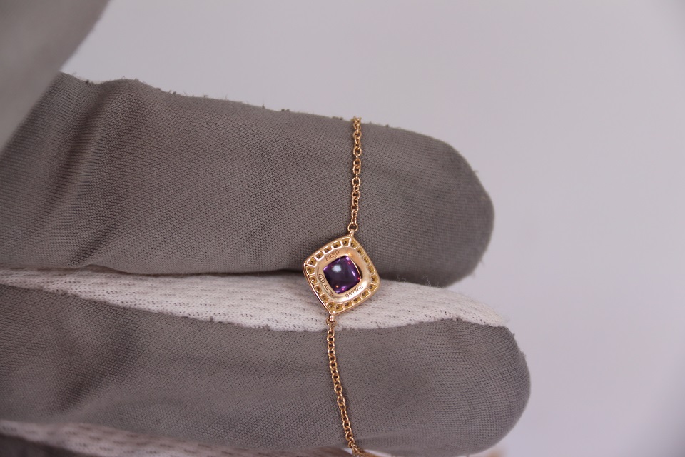 Неспешно продается новый женский золотой браслет из 18к розового золота, с бриллиантами и аметистовым кабошоном