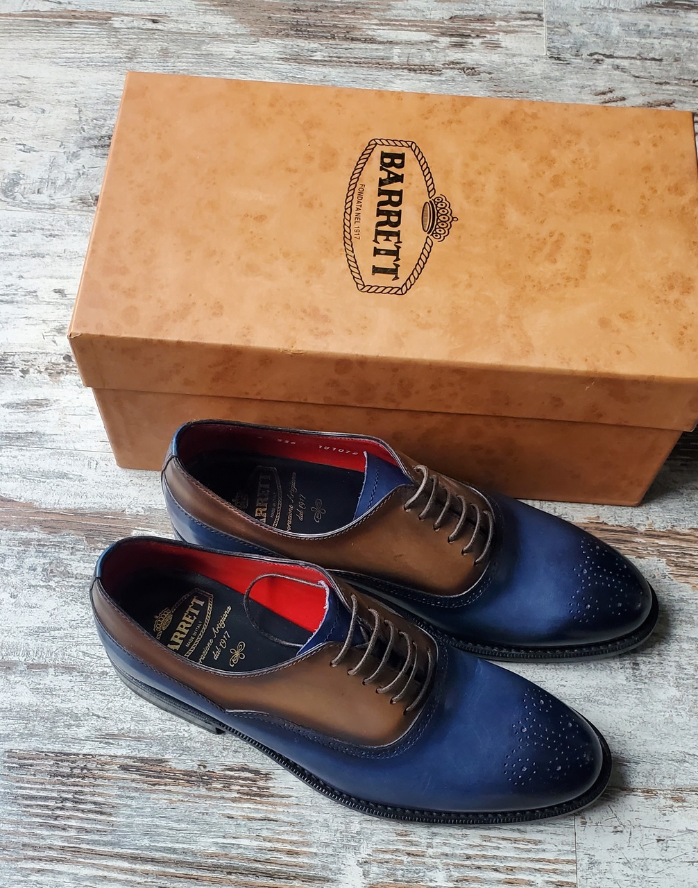 Подошва ботинок, изготовленная из натуральной кожи тёмно-синего цвета имеет вставки («профилактику») из натурального каучука с фирменным изображением марки и герба мануфактуры "Ваrrett", и укреплена прошивкой льняной нитью, выполненной вручную, и бронзовыми гвоздиками.