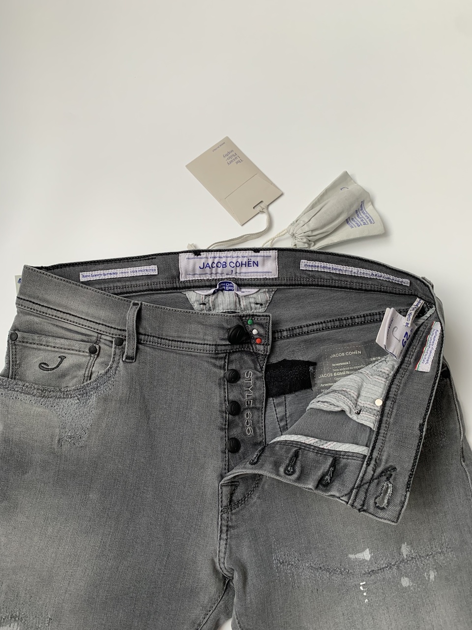 JACOB COHËN новые мужские джинсы с эффектом разбрызганной краски и потёртостями серого цвета (29 size)