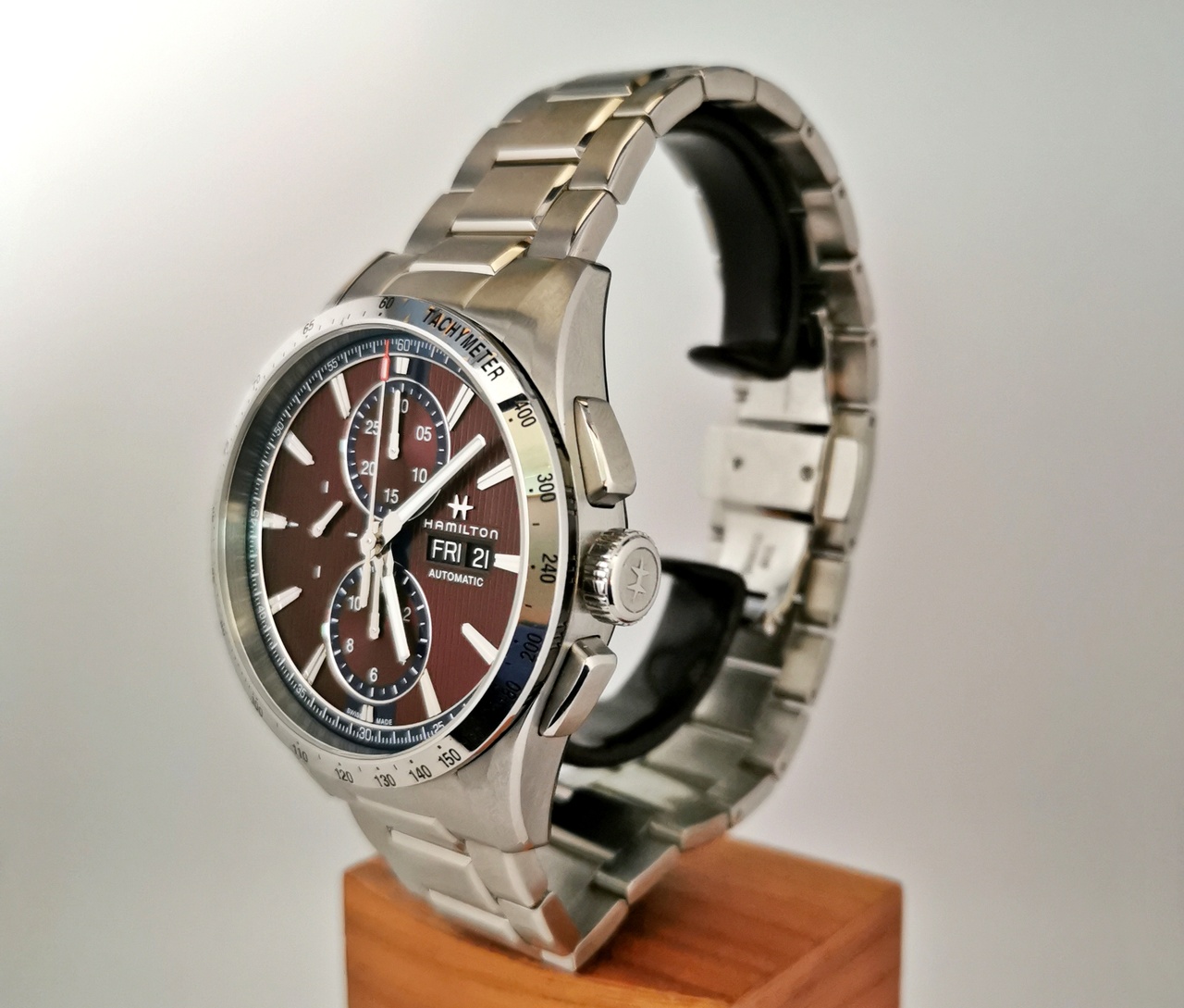 Механизм: Механический хронограф с автоподзаводом H-21 (на основе ETA 7750) с запасом хода до 60ти часов.