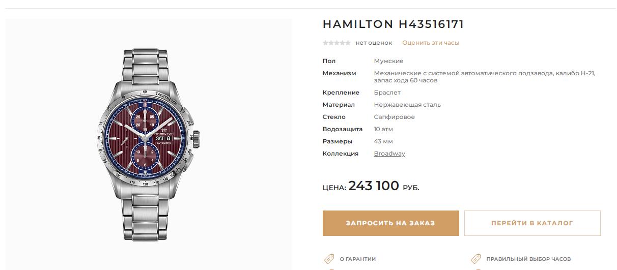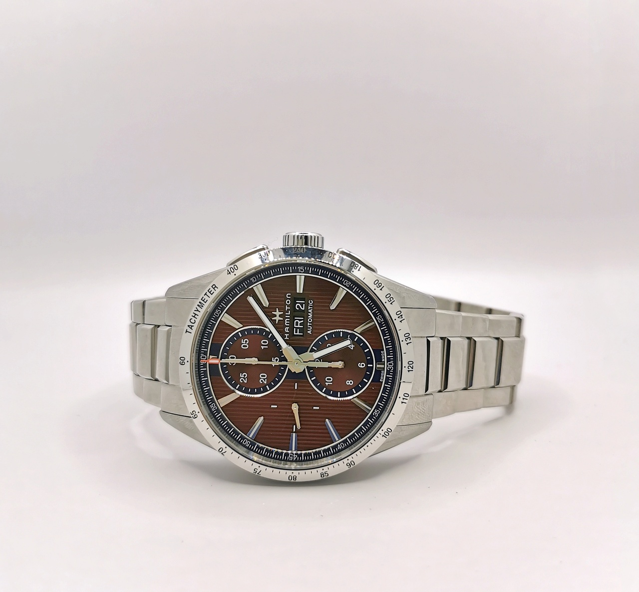 В продаже мужские часы Hamilton Broadway в бордовом оформлении, которые пополнили коллекцию Hamilton современным свежим образом. Высокоэффективный автоматический механизм хронографа H-21 с повышенным 60-часовым запасом хода является наглядным примером гармоничного сочетания безупречного стиля и богатого внутреннего содержания в часах, созданных для жителей современных мегаполисов.