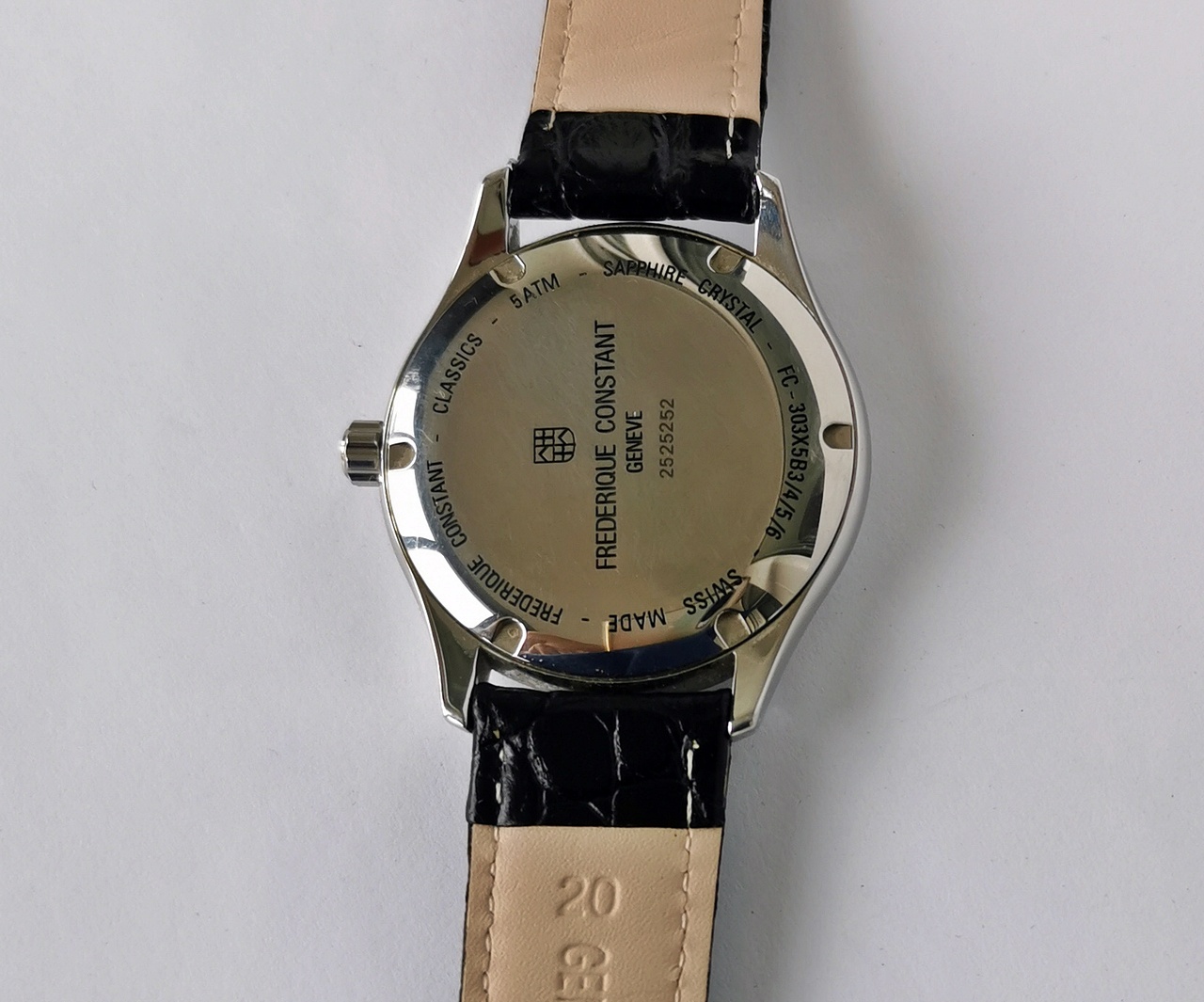 В продаже мужские часы классического стиля в размере корпуса 40мм. Такой аксессуар идеально дополнит ваш деловой костюм и повседневный образ. В механизме FC-303 26 камней, частота 28800 полуколебаний в час. Запас хода 38 часов. Стрелки и метки покрыты люминесцентным составом, что позволяет ориентироваться во времени даже в темноте. Окошко в районе 3-х часов показывает дату. Сапфировое стекло обеспечивает защиту циферблата от нежелательных повреждений. Кожаный ремешок отлично дополняет этот поистине мужской аксессуар.