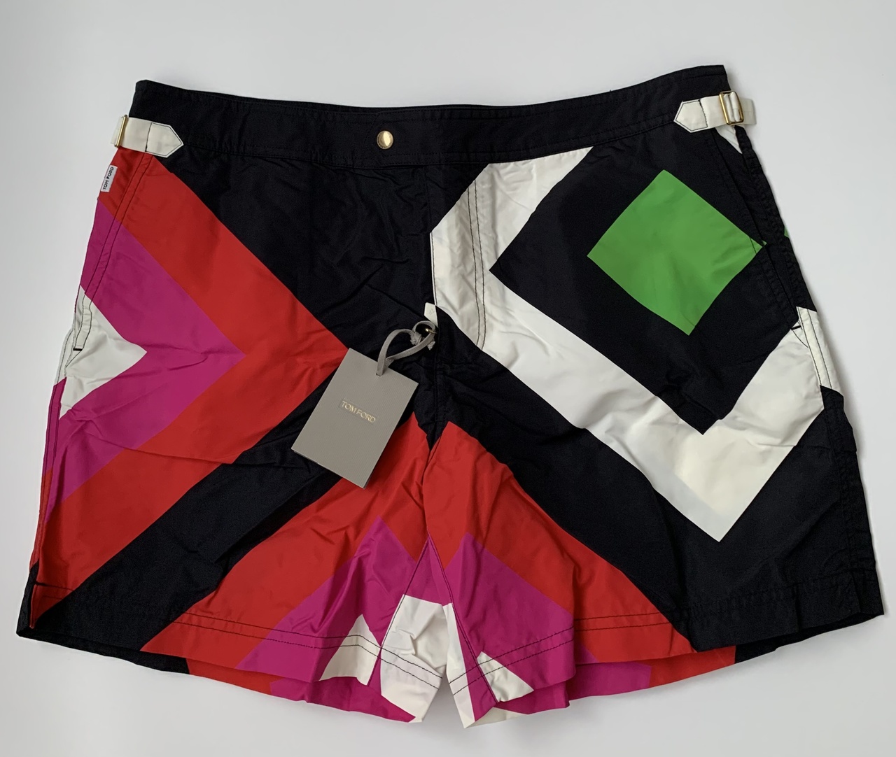 В продаже,новые мужские шорты от американской люкс-марки TOM FORD.Сшиты из тонкого быстросохнущего нейлона.Благодаря добавлению в состав материала прочных волокон эластана вещь не стесняет движения.Широкий пояс дополнен двумя ремнями с пряжками,с помощью которых удобно регулировать посадку.