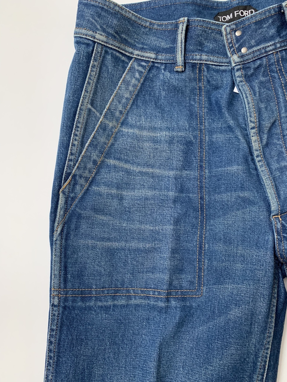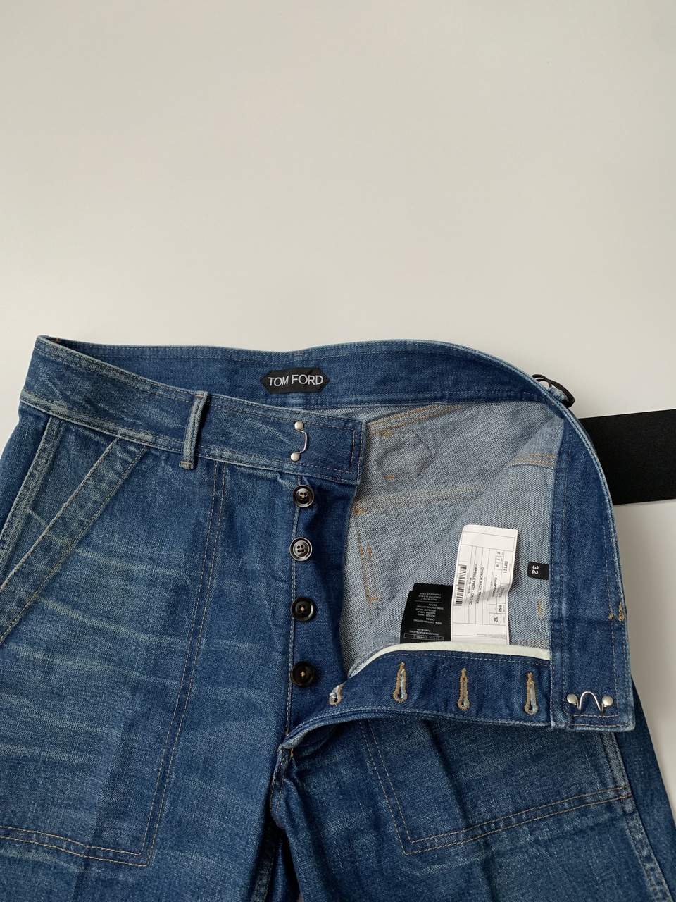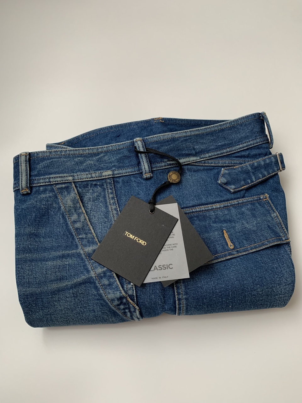 TOM FORD новые мужские брюки из денима синего цвета с потёртостями (32 size)