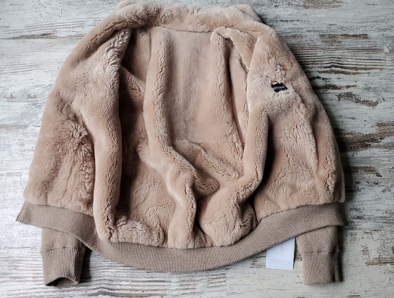 Внутренняя сторона бомбера имеет подкладку из ШИКАРНОГО плотного и шелковистого стриженного МЕХА БОБРА бежевого цвета.