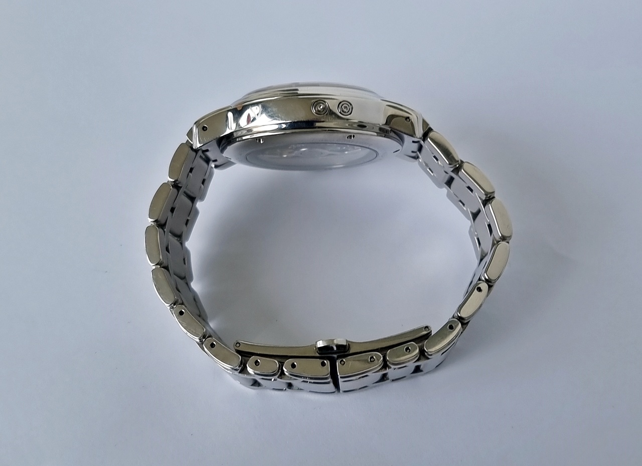 Функции: часы, минуты, секунды, хронограф, дата, день недели, месяц, тахометрическая шкала, индикатор фазы луны
