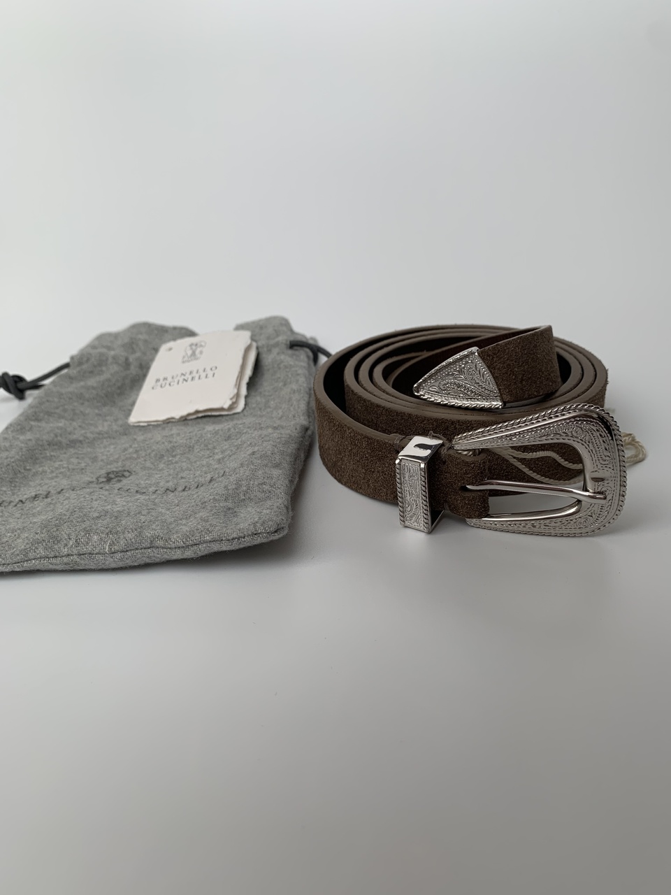 BRUNELLO CUCINELLI новый мужской ремень из замши /СЕРЕБРО/ (105 см*3 см)