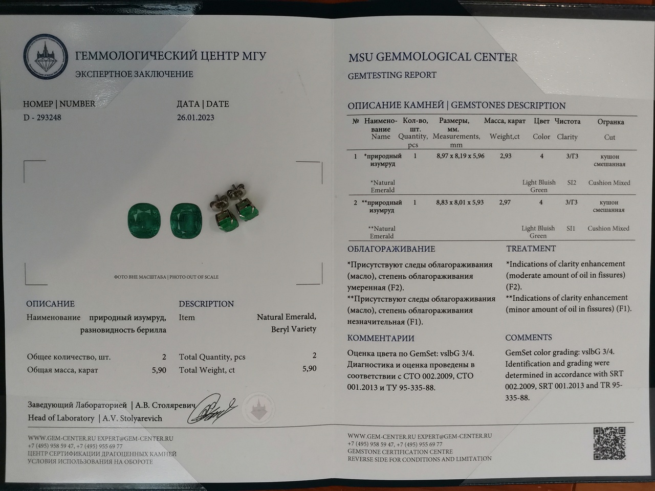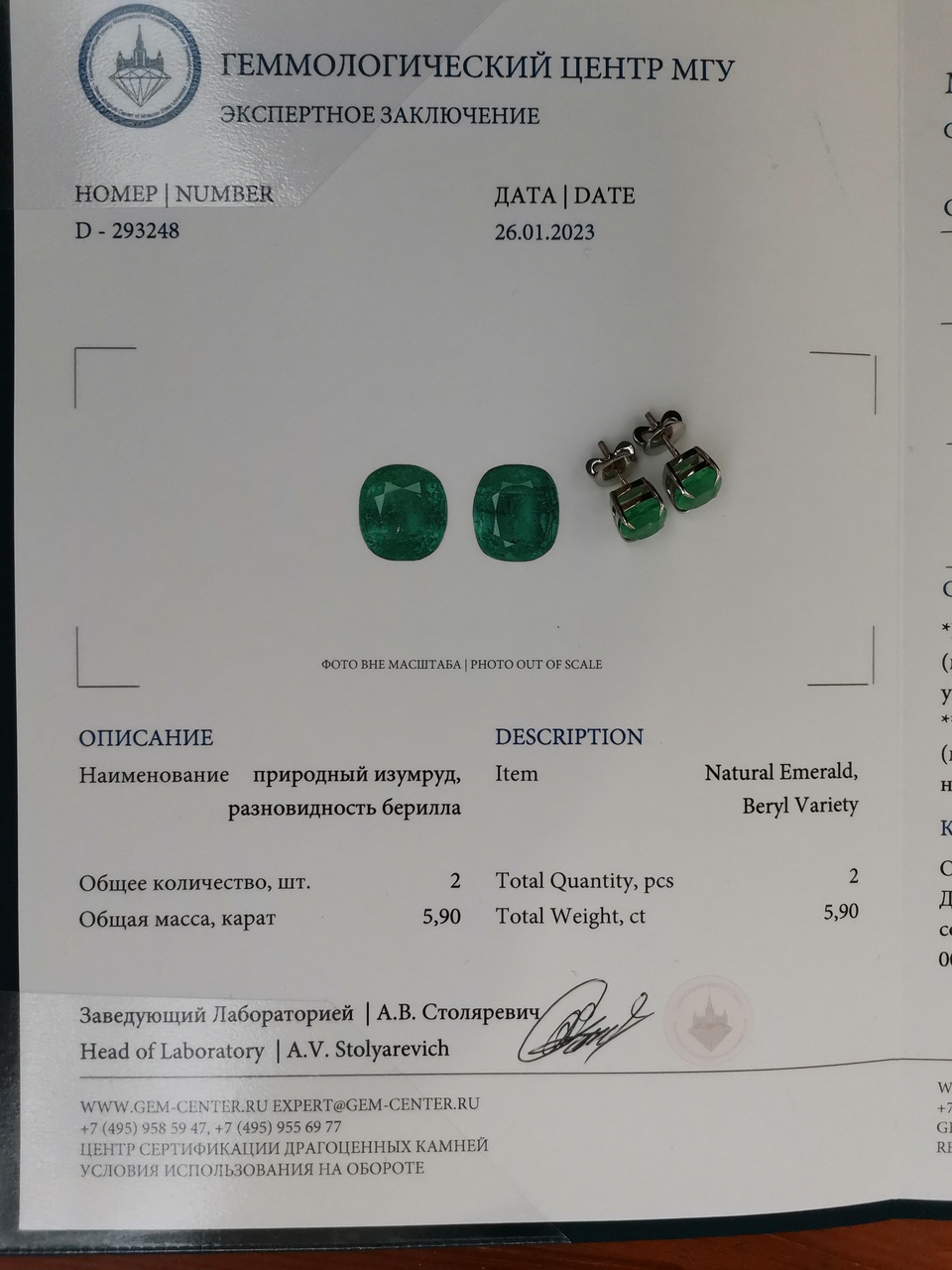 Золотые пуссеты с природными изумрудами 5.90 к.Мгу