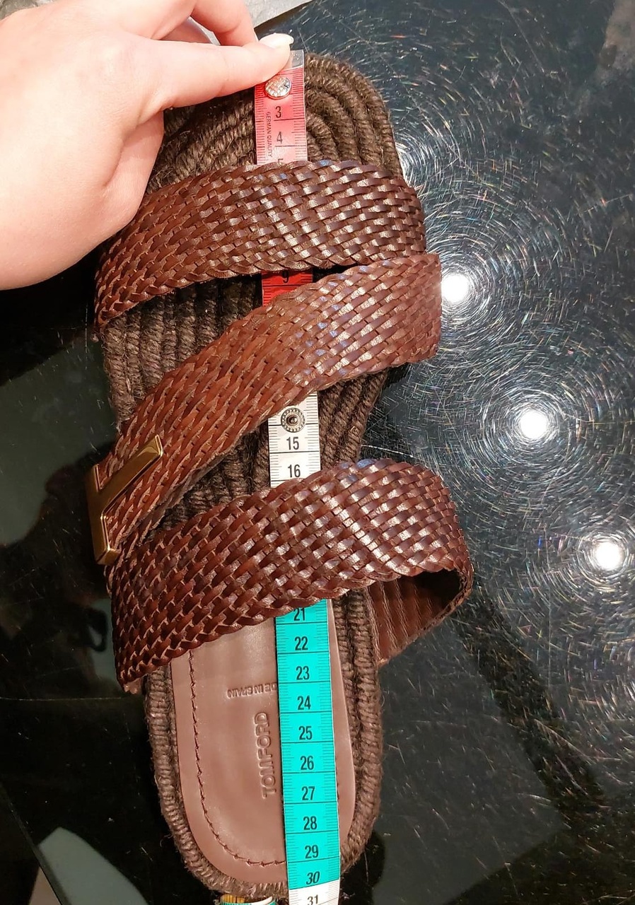 Шлепанцы Grafton насыщенного шоколадного оттенка вошли в коллекцию сезона весна-лето. Для изготовления модели Том Форд выбрал полуглянцевую патинированную кожу. На одном из трех ремешков — позолоченная металлическая деталь в виде литеры Т[/b][/b]. Гибкую джутовую подошву дополнили накладками и низким каблуком.