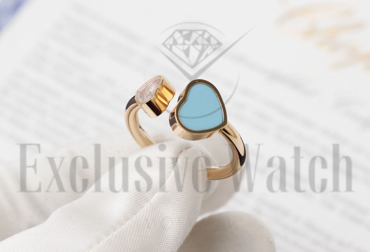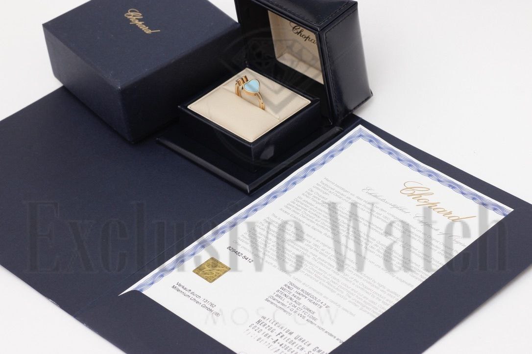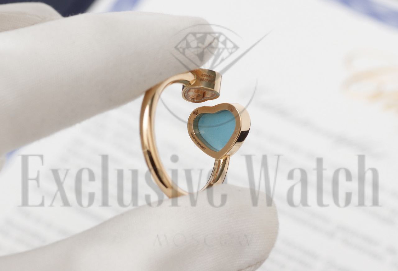 КОЛЬЦО *CHOPARD * HAPPY HEARTS 829482 - 5412 / РОЗОВОЕ ЗОЛОТО 18К / ПЛАВАЮЩИЙ БРИЛЛИАНТ / БИРЮЗА