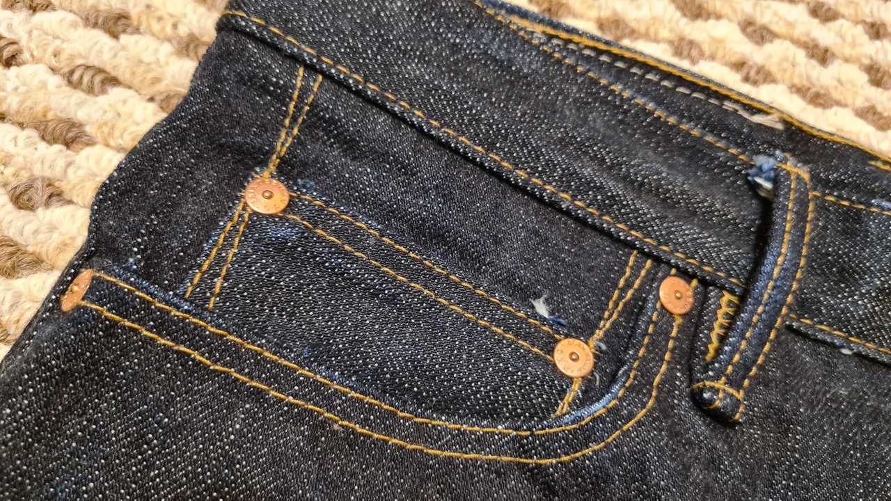 Деним: 18OZ японский деним, сотканный специально для этого выпуска. Обладает насыщенным индиго и выраженной неоднородностью фактуры