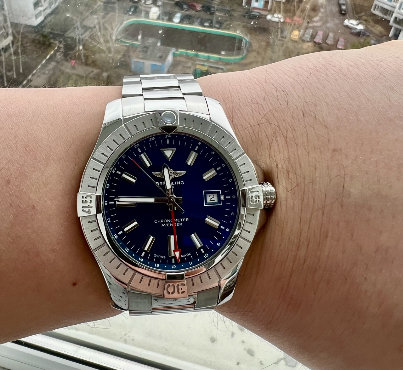 Смелый дизайн, чрезвычайно прочная конструкция и ударопрочность стали отличительными чертами модели Avenger Automatic GMT 45 с дополнительной красной стрелкой для индикации второго часового пояса. Будучи настоящим представителем семейства Avenger, эти часы Breitling подходят для ношения с перчатками и гарантируют пилоту-любителю беспрецедентный уровень безопасности и надежности. Модель Avenger Automatic GMT 45 обладает прочным корпусом из нержавеющей стали диаметром 45 мм, голубым циферблатом и браслетом из нержавеющей стали либо армейским кожаным ремешком голубого цвета с классической или раскладной застежкой из нержавеющей стали. Благодаря наличию массивного безеля и особой формы головки подзавода манипуляции с часами Avenger Automatic GMT 45 можно удобно выполнять, не снимая перчатки.