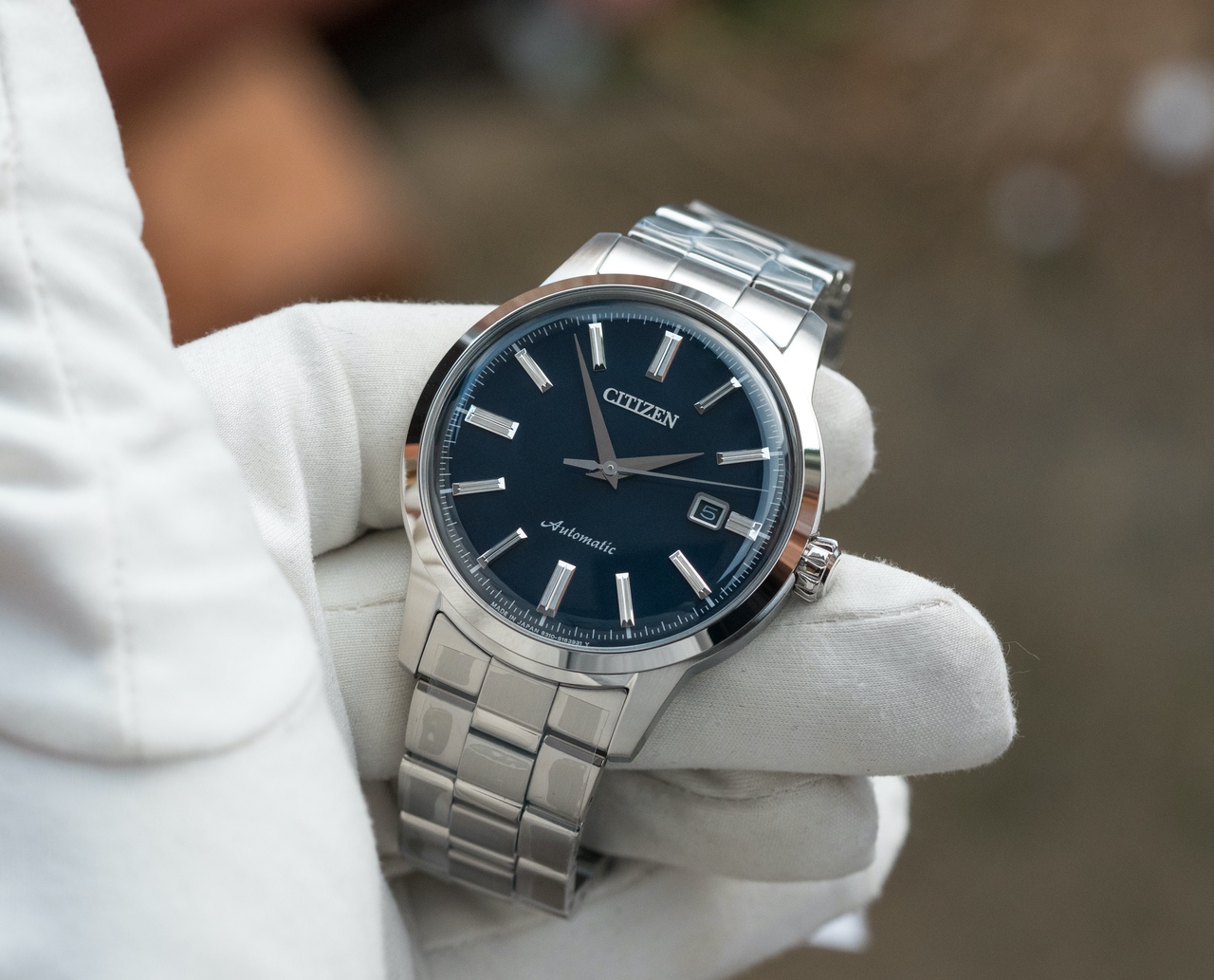 Темно-синий циферблат с легким санберстом(мелкое сатинирование расходящееся лучами от центра)