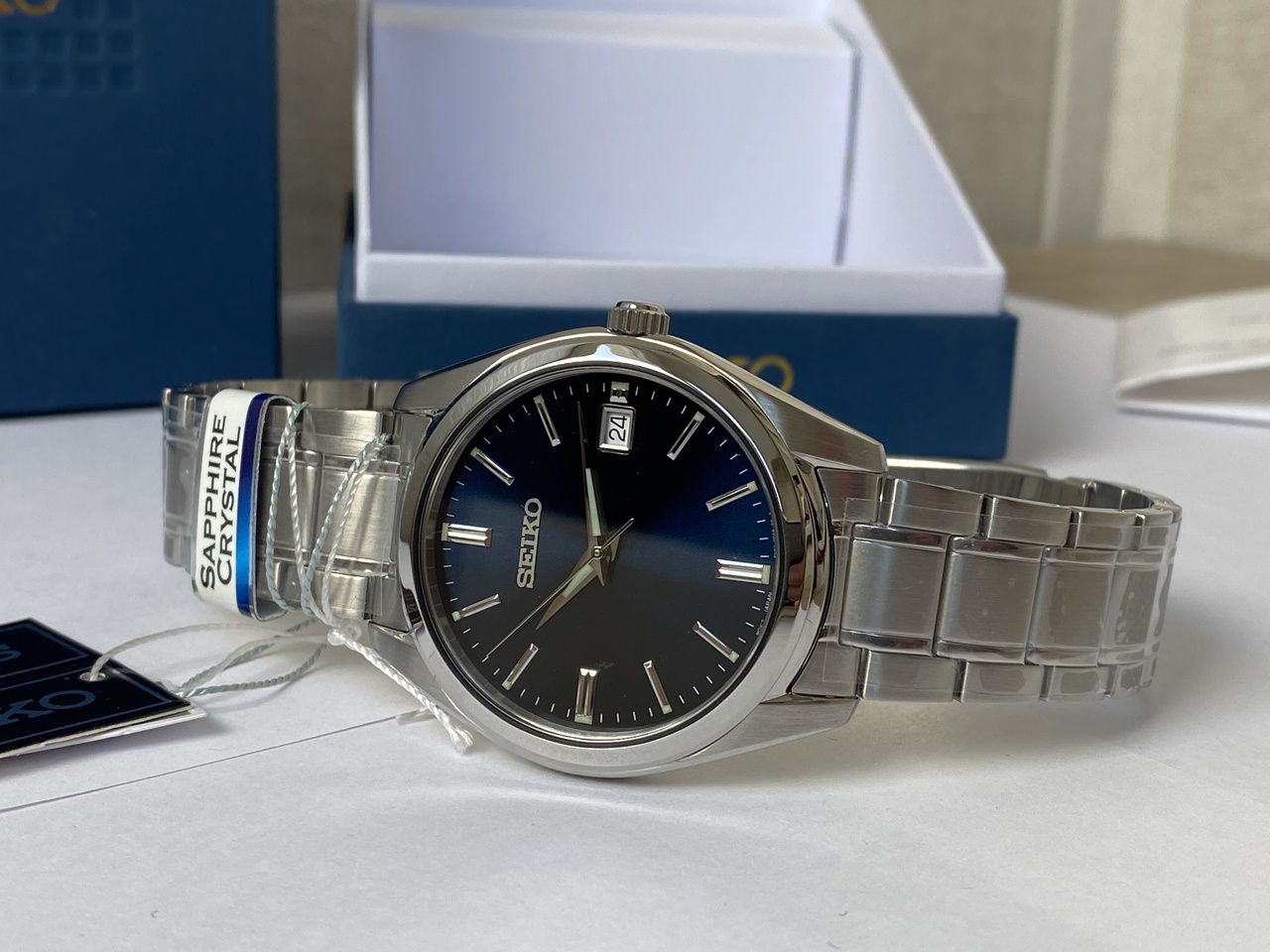 Хороший sunbirst циферблат, переливает от ярко-синего до чёрного с объёмными метками под сапфировым стеклом хорошей прозрачности, ну и в довершение дойстойный литой браслет