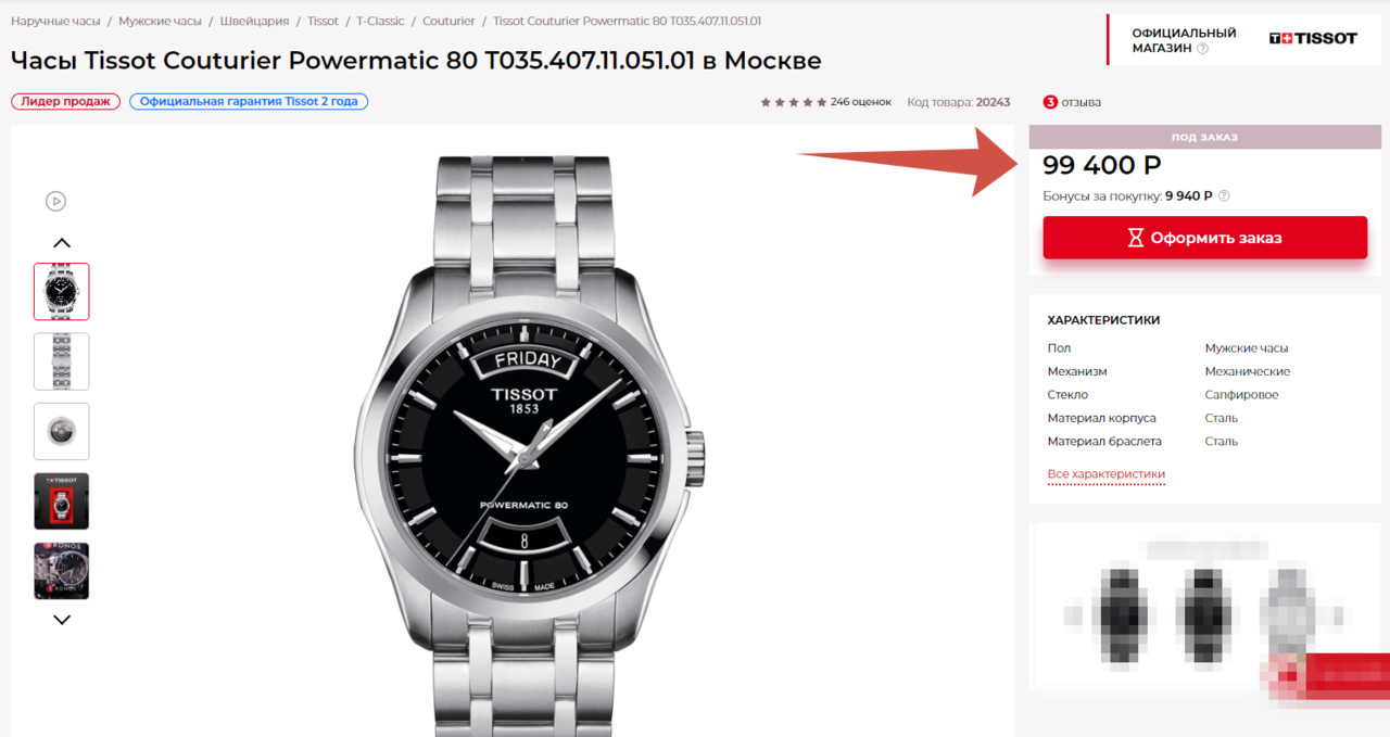 Калибр: Powermatic 80.141 (Запас хода - 80 часов)