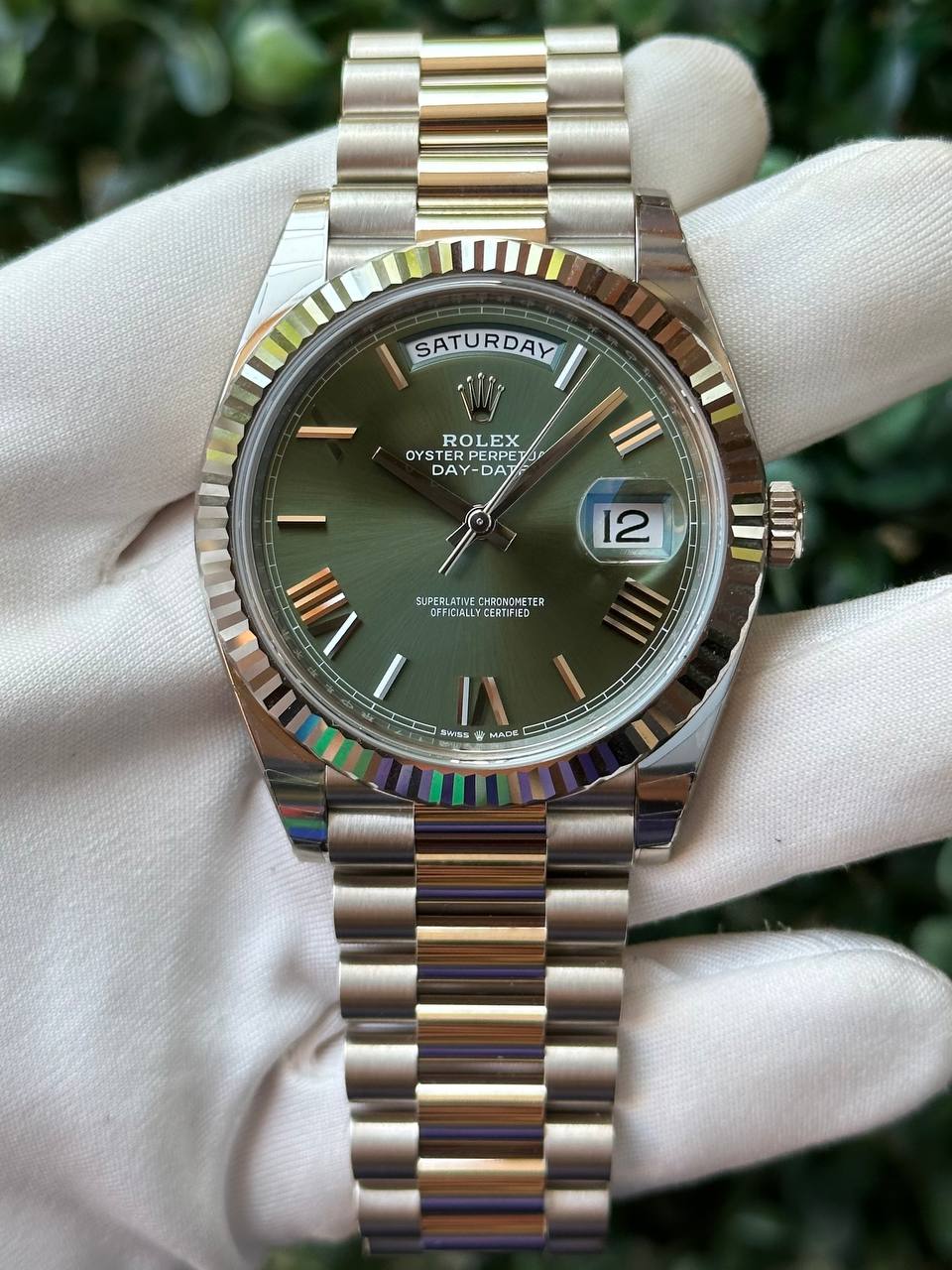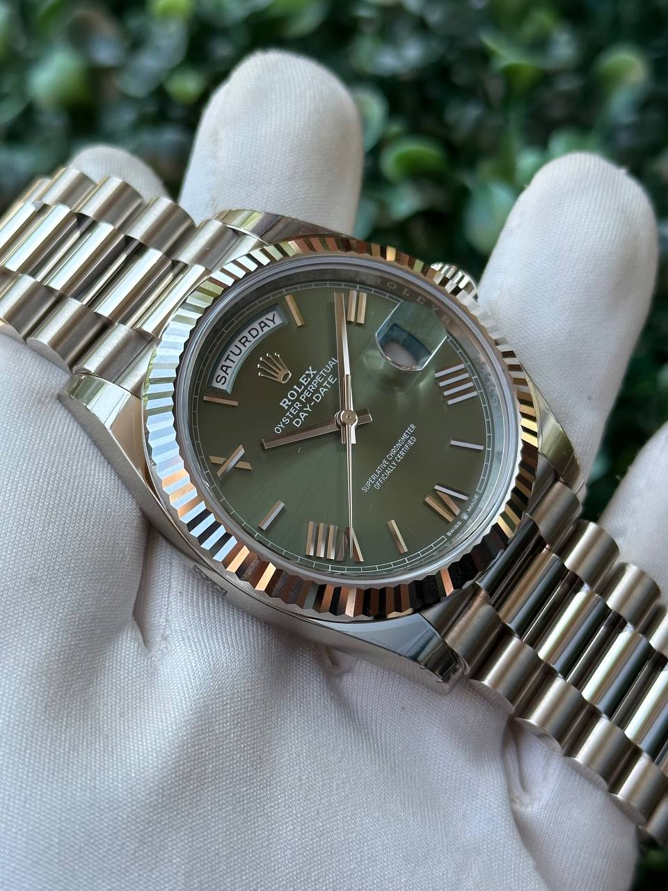 *ROLEX* DAY-DATE 40 WHITE GOLD 228239 OLIVE GREEN/ БЕЛОЕ ЗОЛОТО/ РИФЛЕНЫЙ БЕЗЕЛЬ/ ЗЕЛЕНЫЙ ЦИФЕРБЛАТ