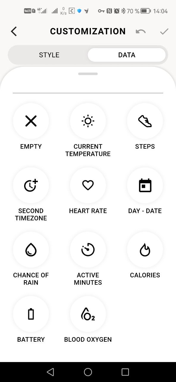 Возможна кастомизация циферблата, но в очень ограниченных рамках. «Из коробки» доступно только 11 циферблатов, причем изменять можно далеко не все, а новые циферблаты скачать неоткуда (я не нашёл). Что бесит – время в цифровом виде отображается только на одном варианте циферблата и его изменять нельзя. Можно добавить цифровое время только в виде «второго часового пояса», причем отображается маленькими цифрами и в убогом виде. Ну какого хрена, Citizen? Из хорошего – можно разместить на циферблате фото или рисунок и сверху добавить разные индикаторы, но не более 4 одновременно. Хотя перетаскивать индикаторы пальцем на экране телефона, пытаясь выровнять – отдельный квест.