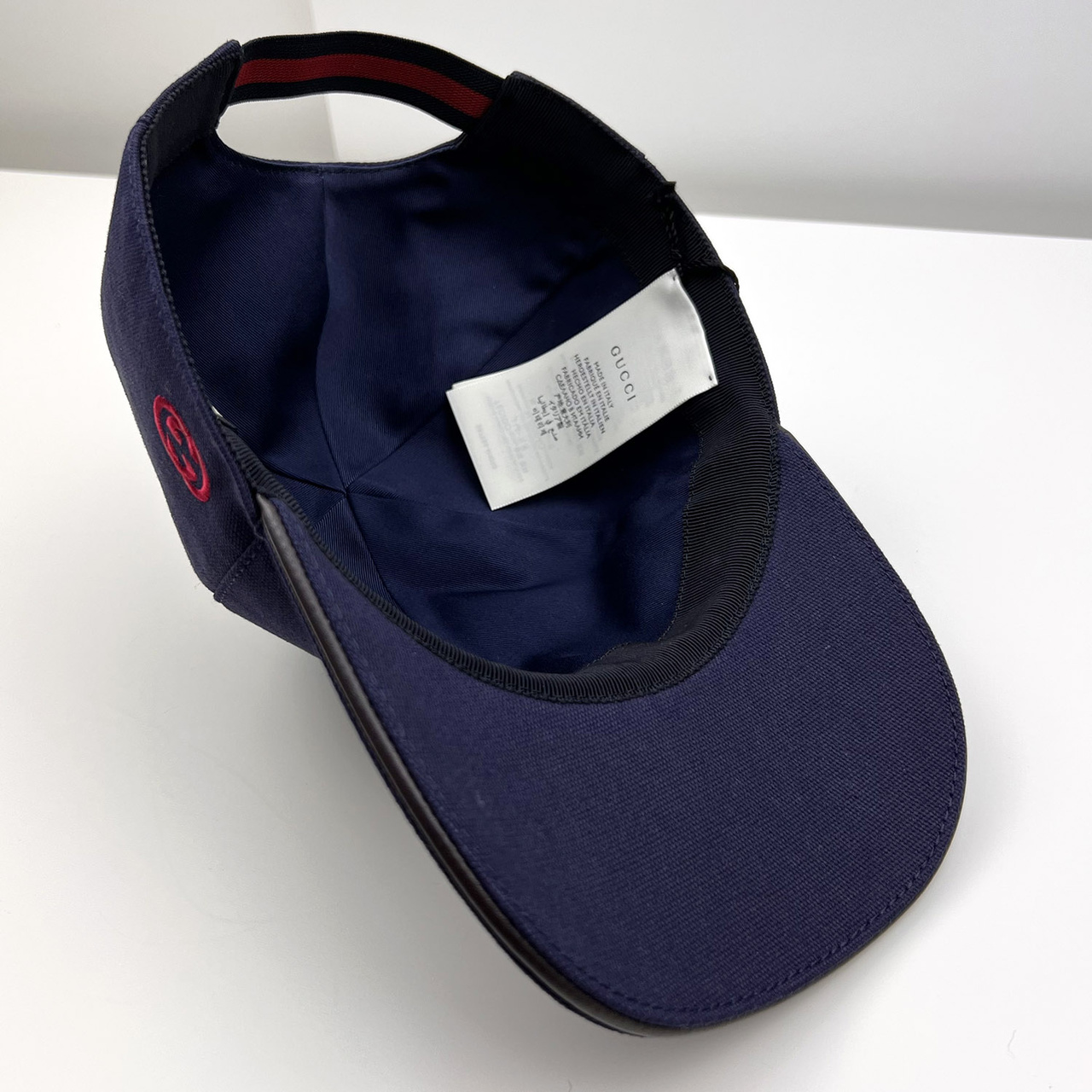 Сбоку украшена лого Gucci GG темно-красного цвета. Сзади эластичная лента в темно-синих цветах одного из символов Gucci - ленты Web.