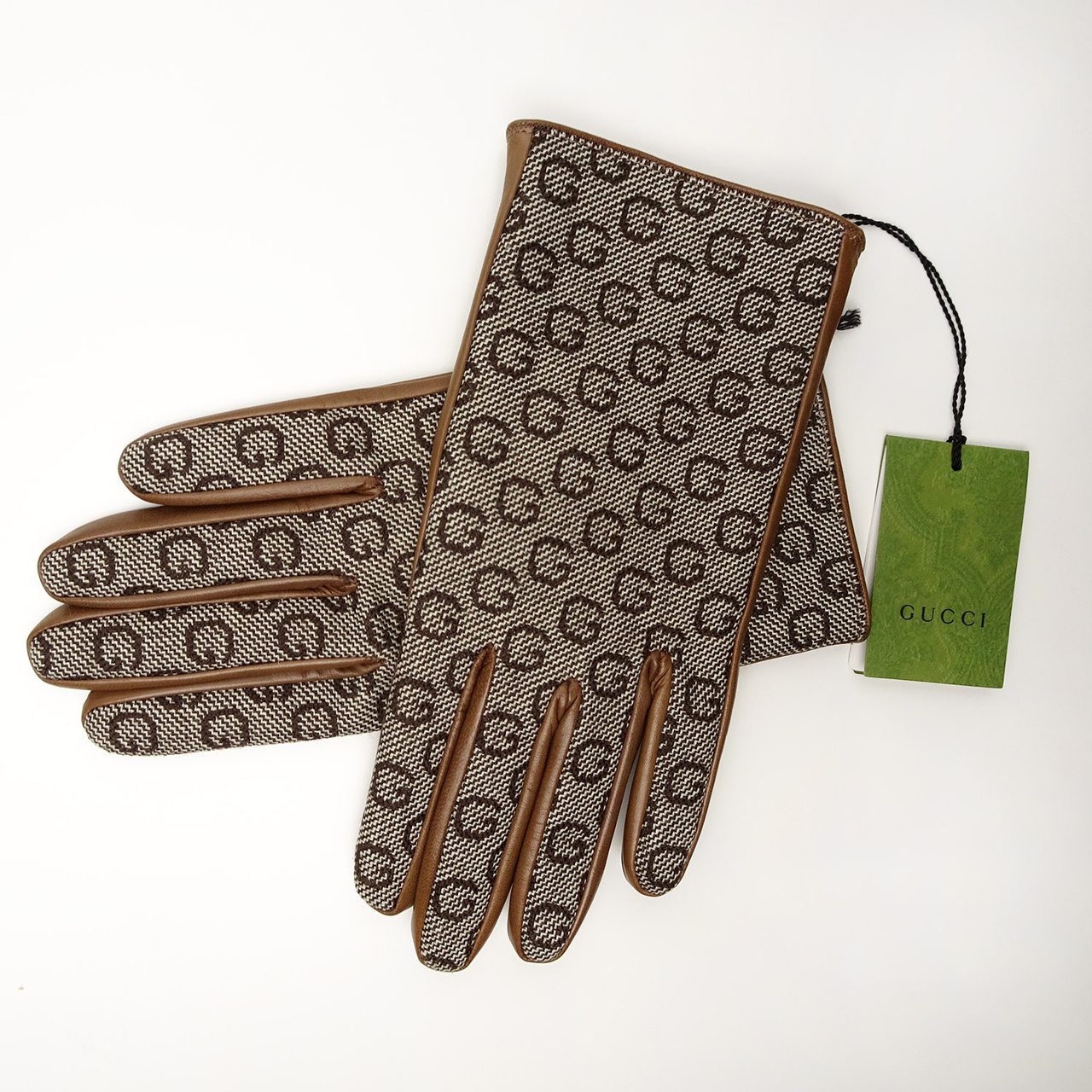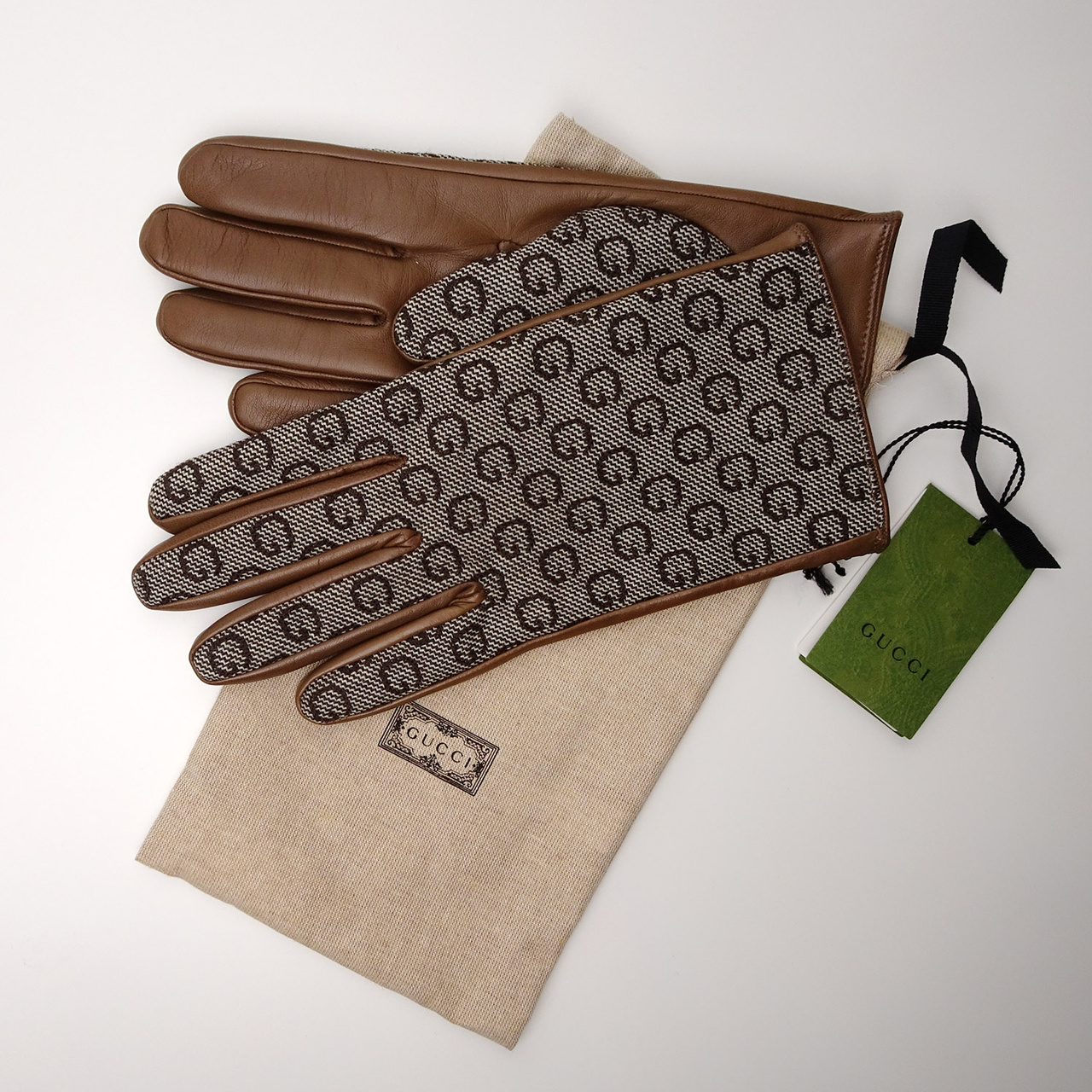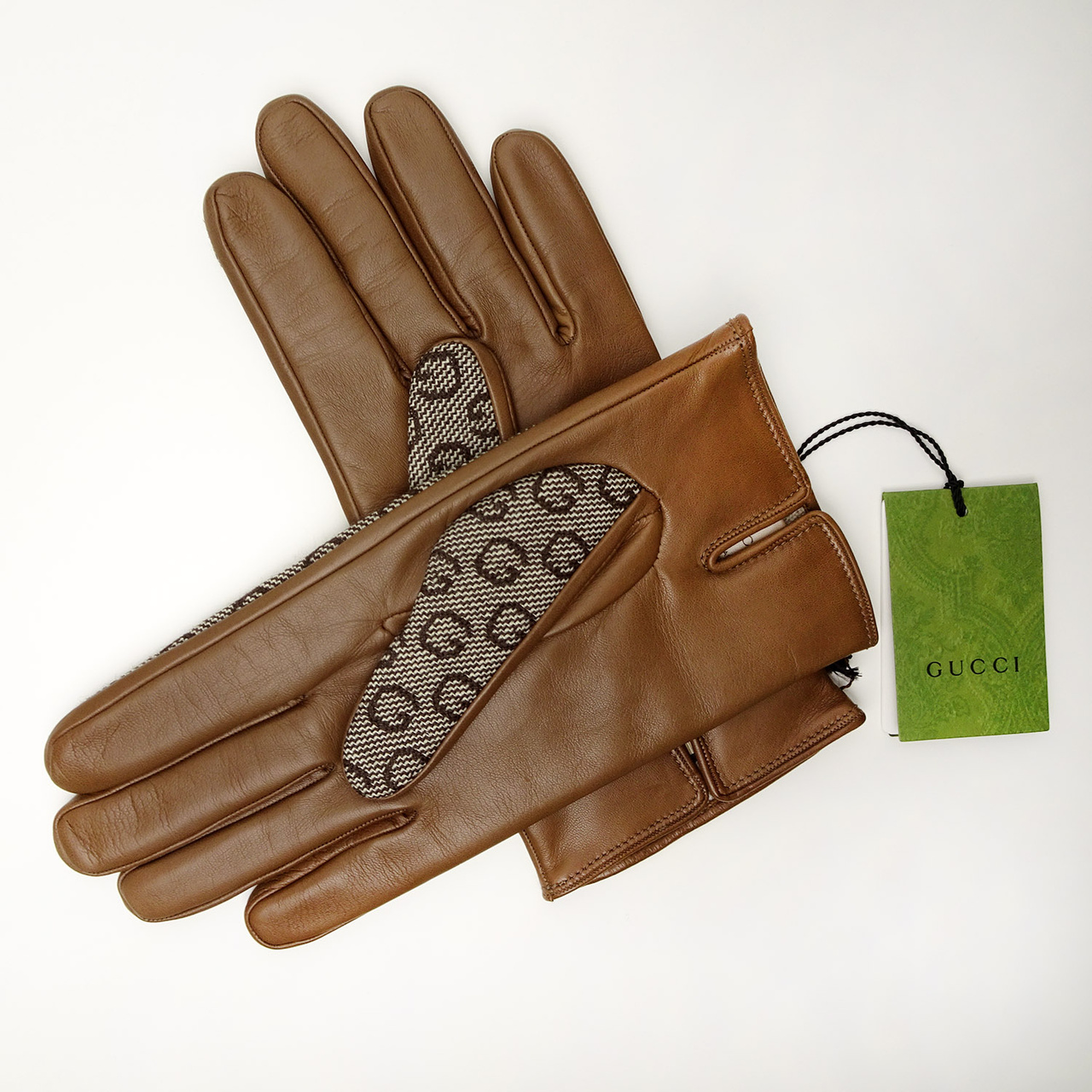 Комбинация материалов: натуральная кожа ягненка, вставки из шерсти с орнаментом литеры "G", на кашемировой подкладке.