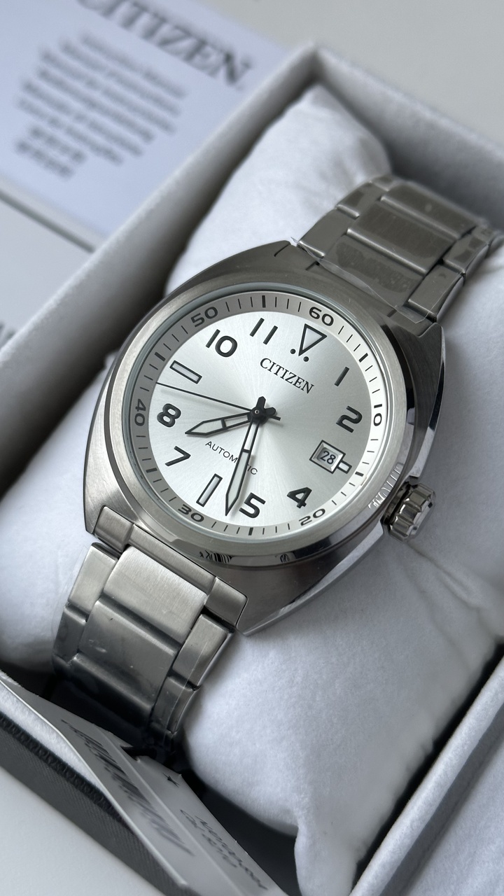 CITIZEN AUTOMATIC NJ0100-89A ПИЛОТЫ НА БРАСЛЕТЕ, СЕРЕБРИСТЫЙ ЦИФЕРБЛАТ, АРАБСКИЕ ЦИФРЫ