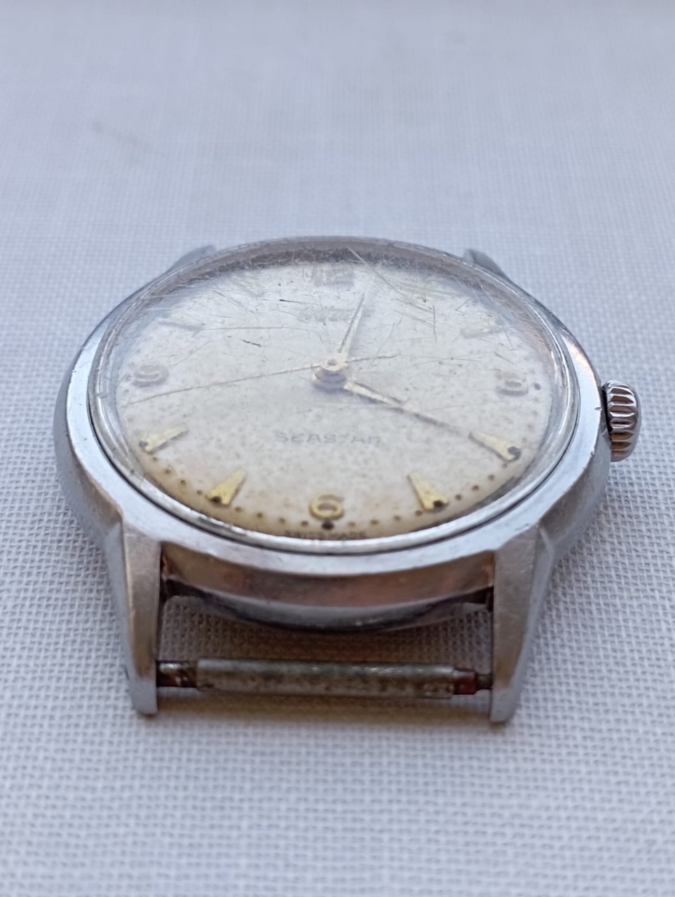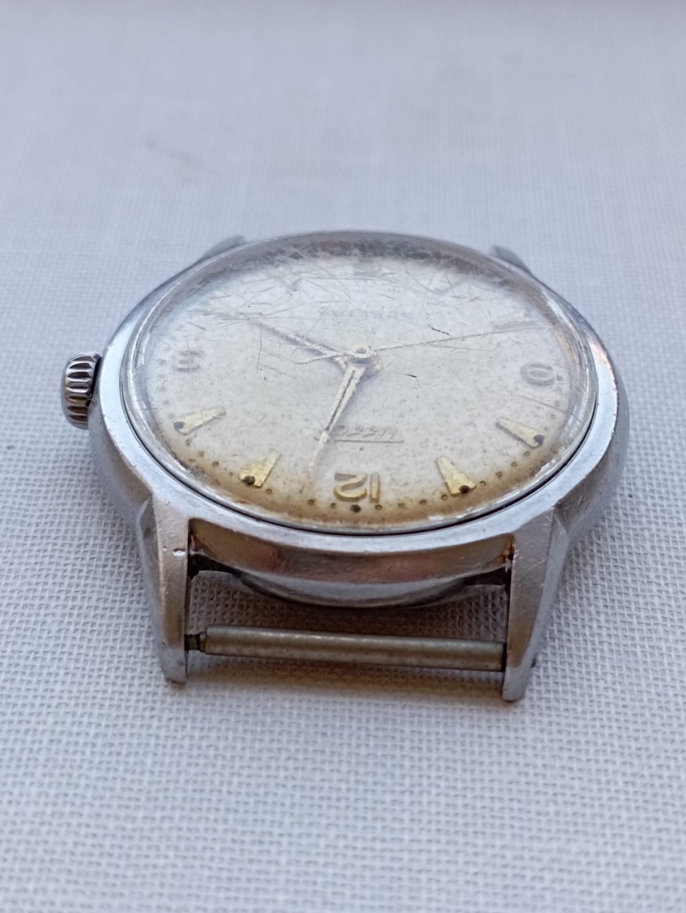 Циферблат не так плох как может показаться на фото. Привести его в порядок вполне представляется возможным. Пожелтело и выгорело стекло, вследствие носки часов на сильном солнце + царапины присутствуют. Мне интересно, после просмотра предложений по этим часам в интернете - там цена повыше. И в основном всё продано, предложений практически нет. Если удастся качественно привести в порядок циферблат и заменить стекло. Привести часы в полный порядок, обслужить и смазать механизм. То думаю продадутся часы дороже, судя по предложению сейчас на рынке.