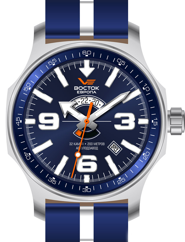 Механизм: Восток 2432 (32 камня) с 24х часовым индикатором и указателем день/ночь.