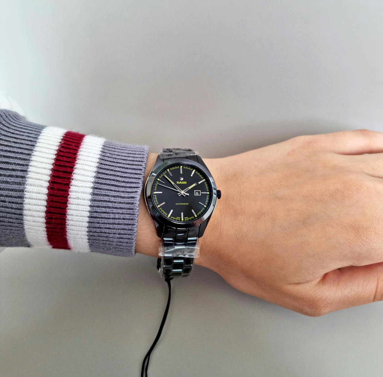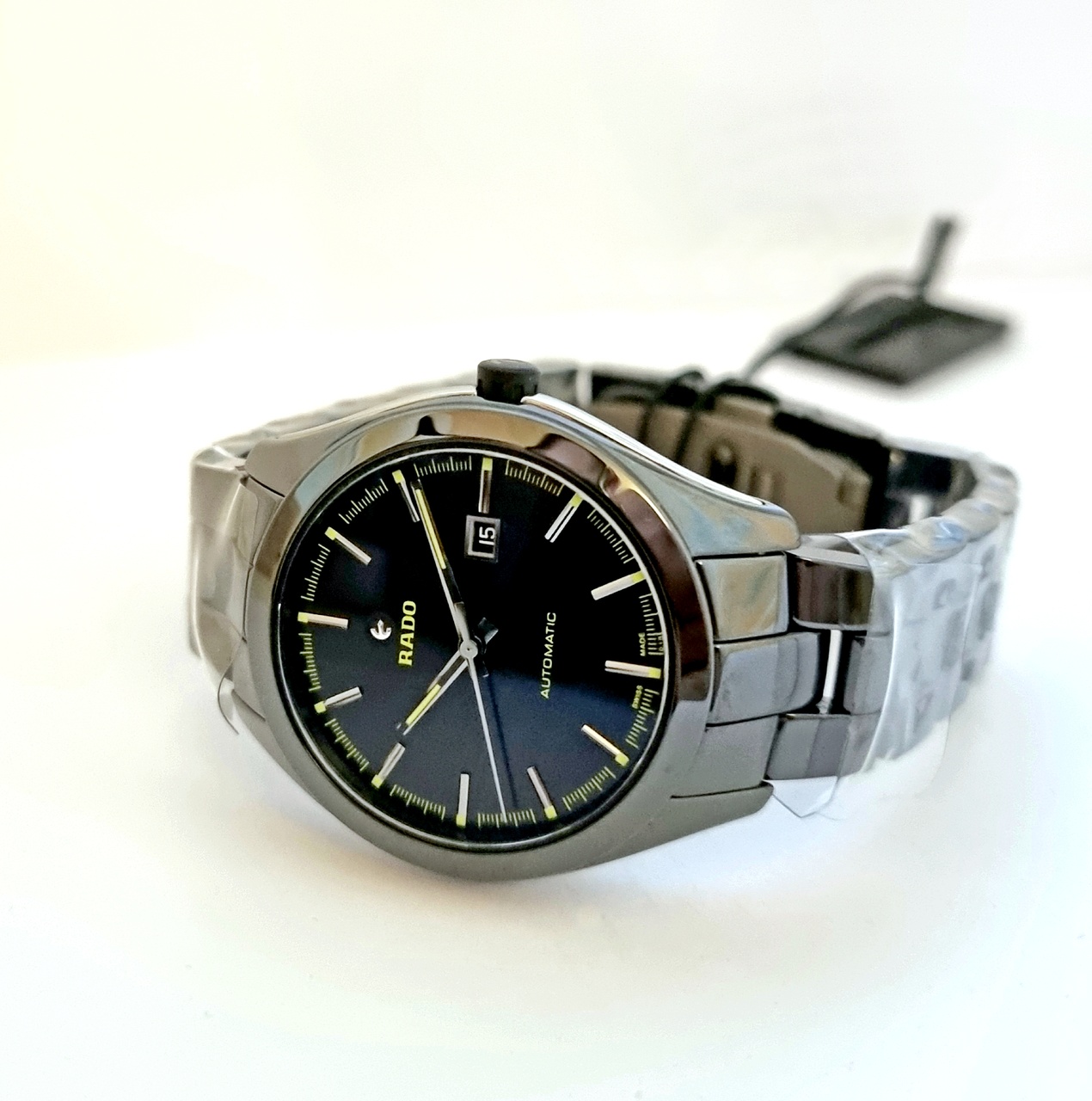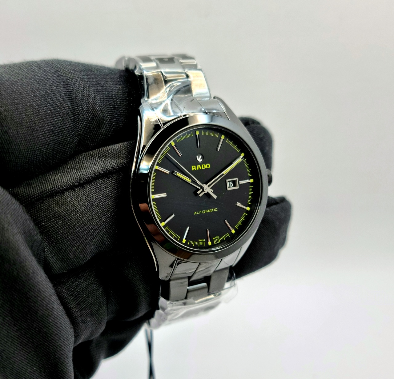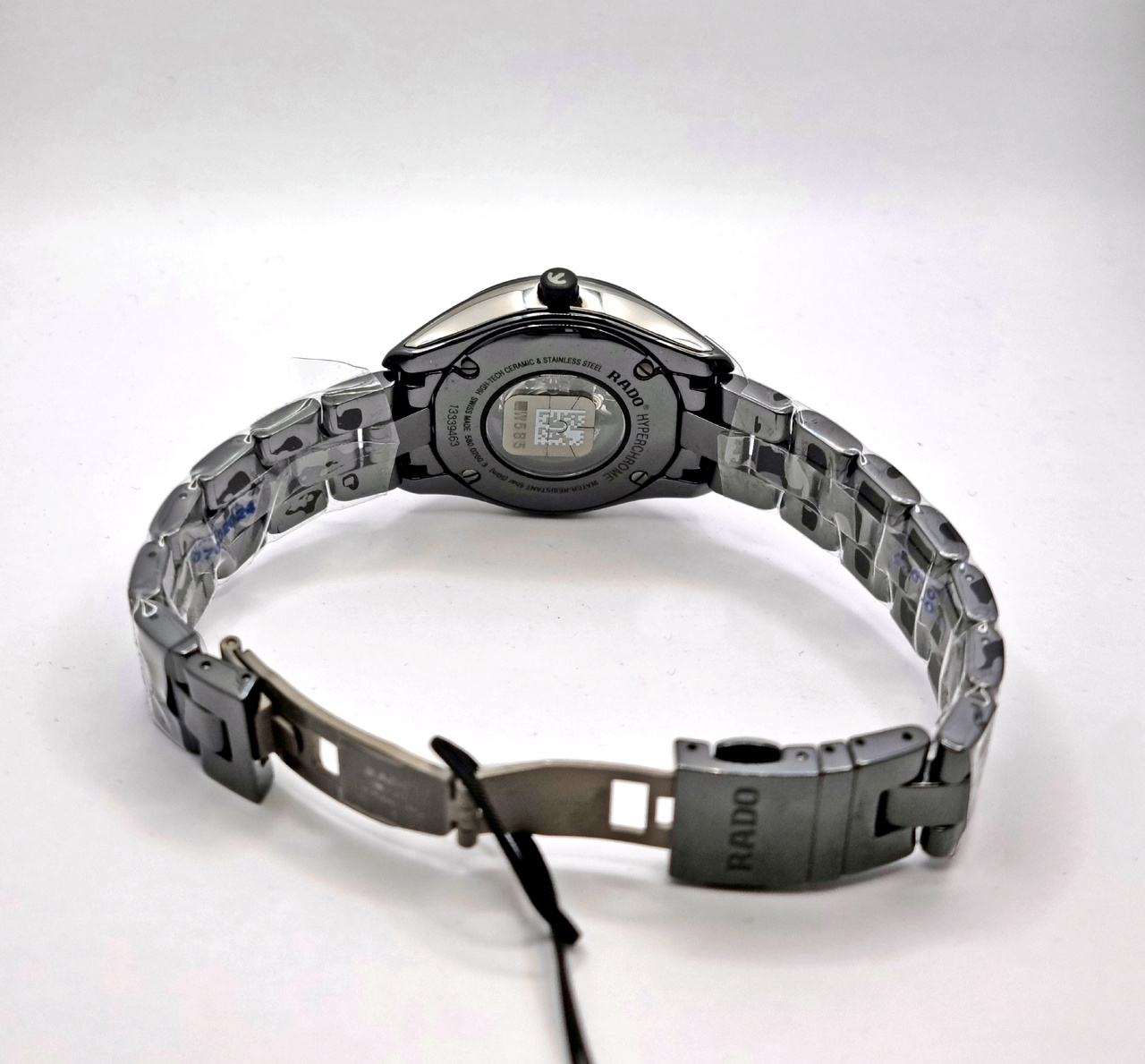 В продаже красивая и стильная модель от швейцарской компании RADO - это аристократические утонченные швейцарские часы из коллекции Rado HyperChrome, которые имеют, выдержанный в черном цвете дизайн всех составляющих элементов и накладных стального цвета боковин на корпусе. Такие часы изготавливаются из высокотехнологичной керамики черного цвета и имеют высокие показатели устойчивости к различным видам механических повреждений, а каучуковая заводная головка не даст пальцам соскользнуть при заводе.