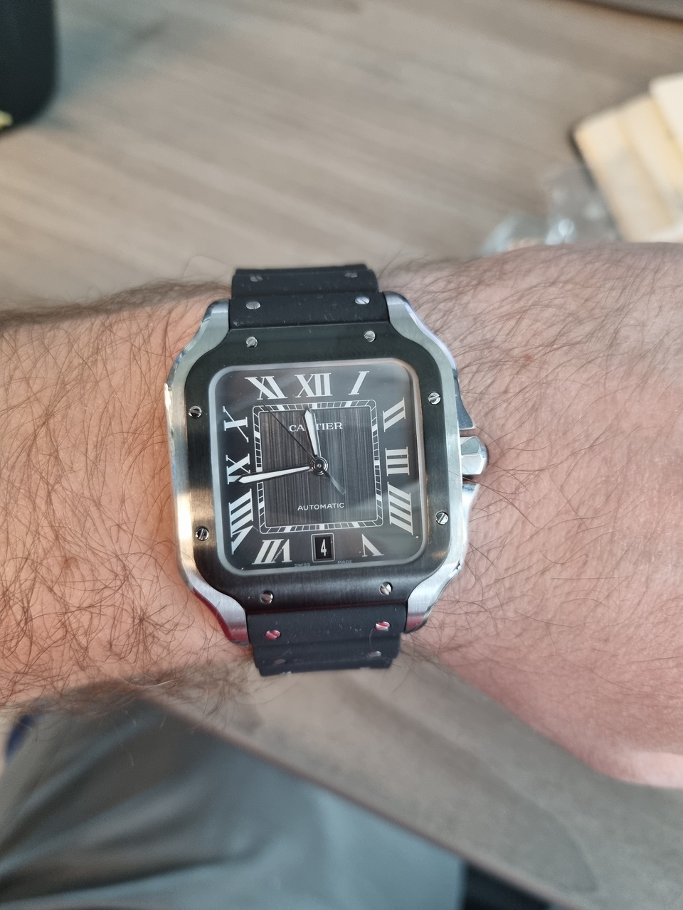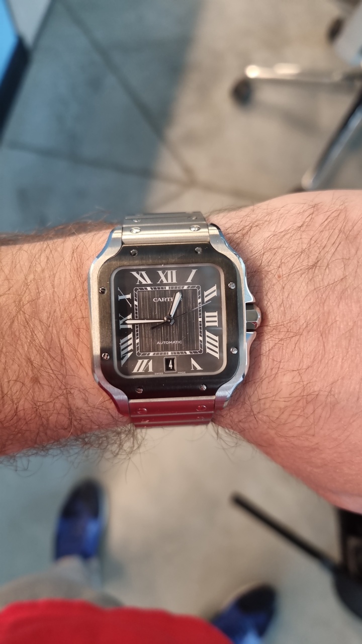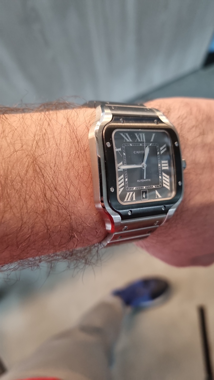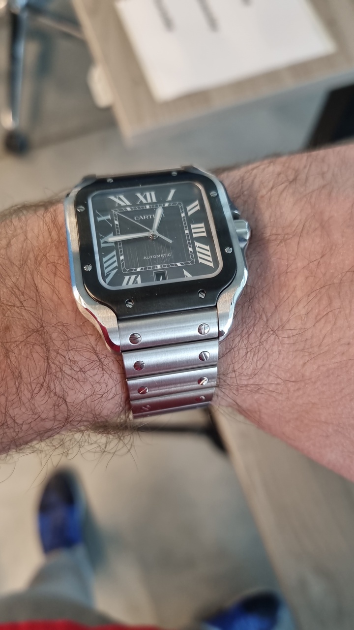 Вообще не задумывался о часах такой формы, а пару лет назад слоняясь по Стамбулу зашел в Cartier, померял сантосы и прям зашло. Потом долго думал хочу ли с полированым безелем или с DLC, в итоге практичность победила. Потом переехал в Сербию, поиски где купить, коллеги в Штатах то были, но в Калифорнии, а платить калифорнийский sales tax желания как-то не было. Потом вспомнил, что у нас есть небольшой офис в Орегоне, который безналоговый. Ну и вот с Jomashop в Орегон, из Орегона в Калифорнию из Калифорнии ко мне в Белград. Хорошо что предупредил товарища не брать с собой коробку и везти часы на руке, на таможне багаж просветили, была бы там коробка, были бы проблемы.