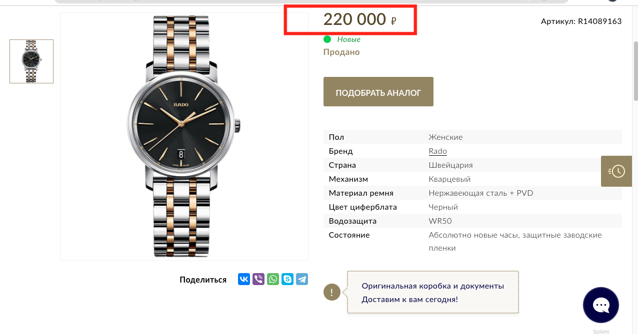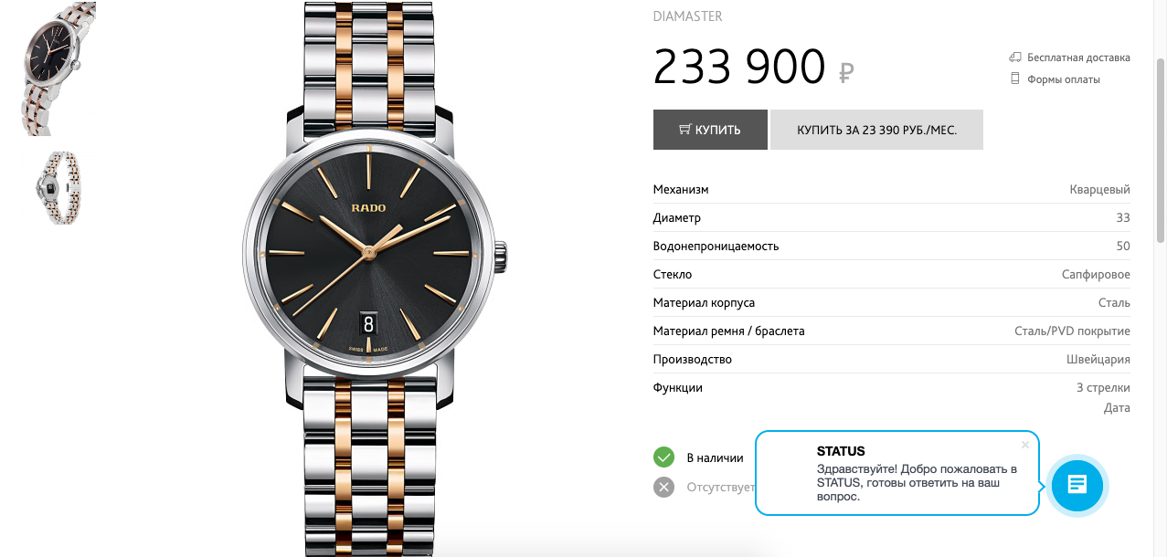 В Екатеринбурге, Москве, Санкт-Петербурге, Новороссийске - возможно лично забрать часы
