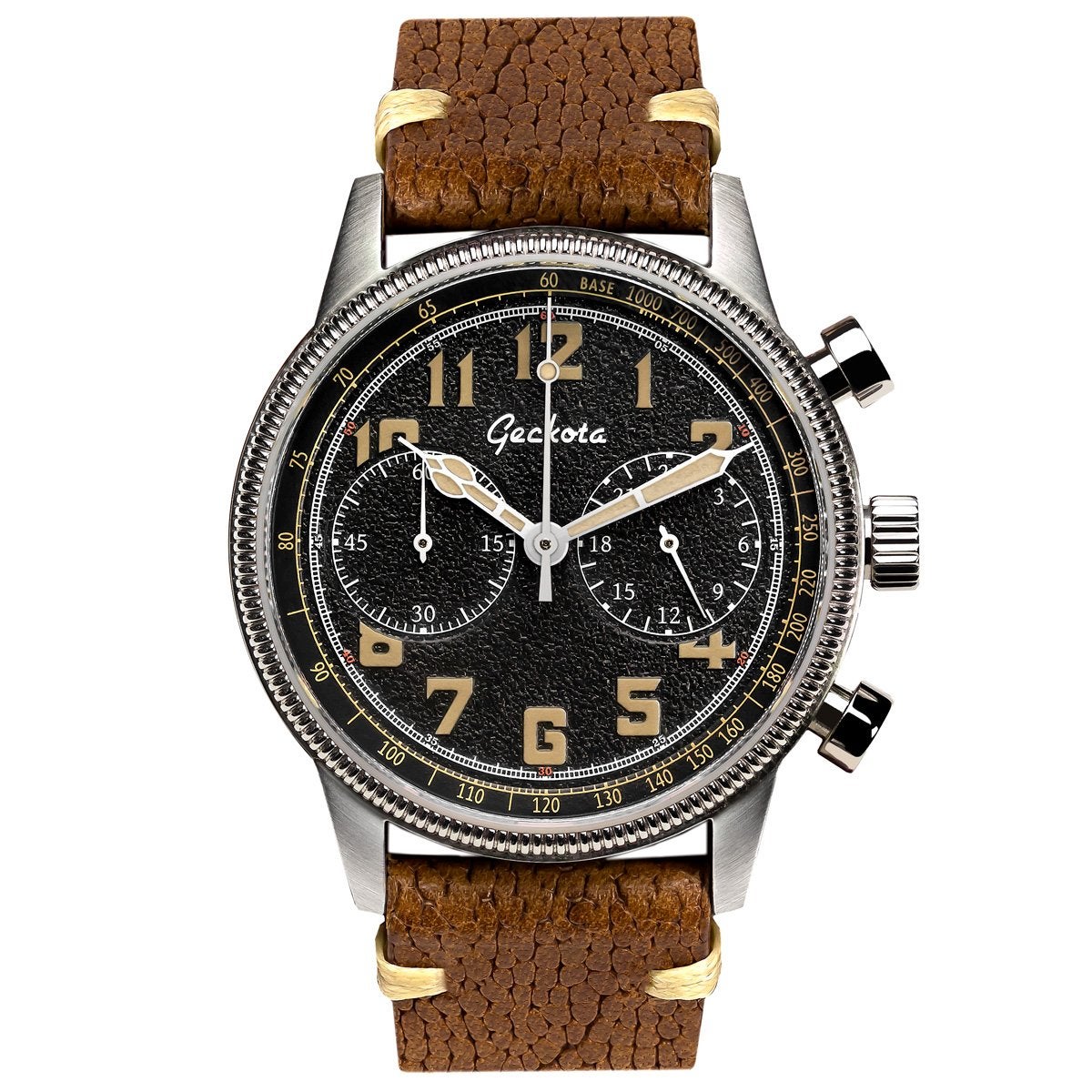 Винтажный хронограф в стиле Zenith Pilot. Geckota выпускает свои часы мелкими партиями и эта модель давно распродана. На вторичке тоже найти почти не реально.