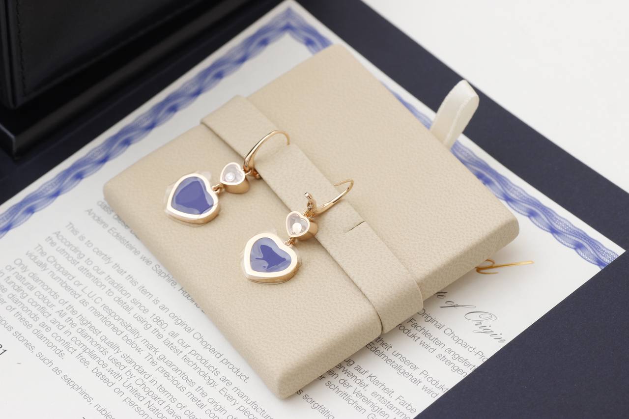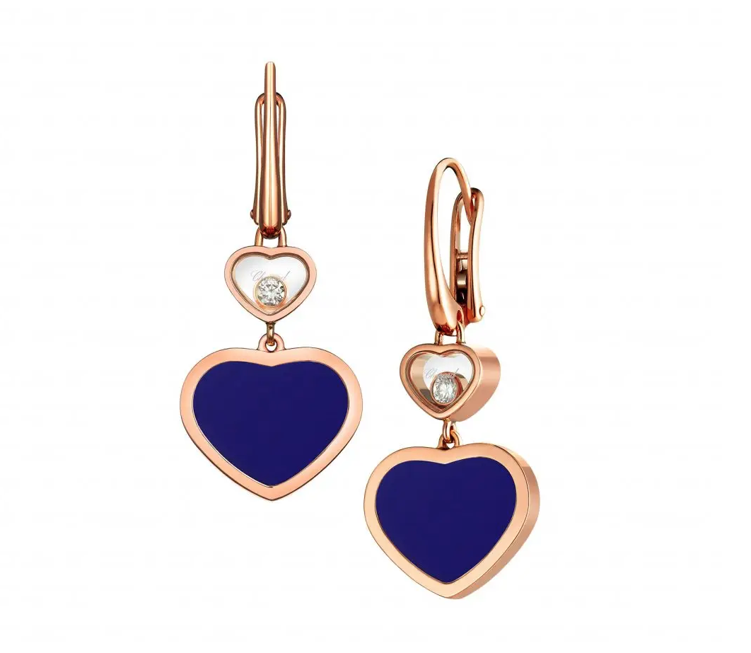СЕРЬГИ CHOPARD HAPPY HEARTS HAPPY DIAMONDS 837482-5510 РОЗОВОЕ ЗОЛОТО 750/ПЛАВАЮЩИЕ БРИЛЛИАНТЫ/ВСТАВКА СИНЕГО ЦВЕТА