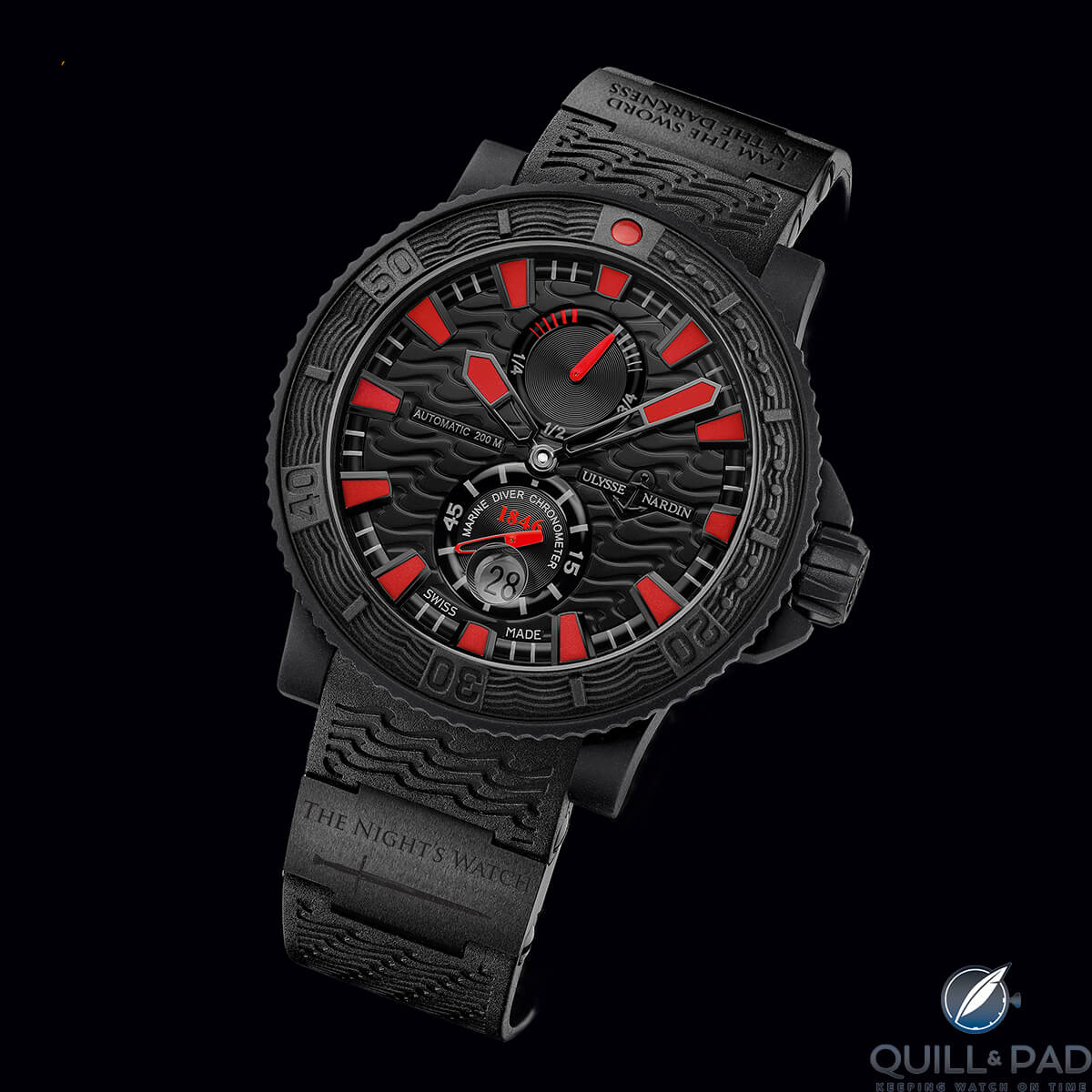 Ремешок: Каучук черного цвета, титановые вставки с чёрным PVD покрытием;