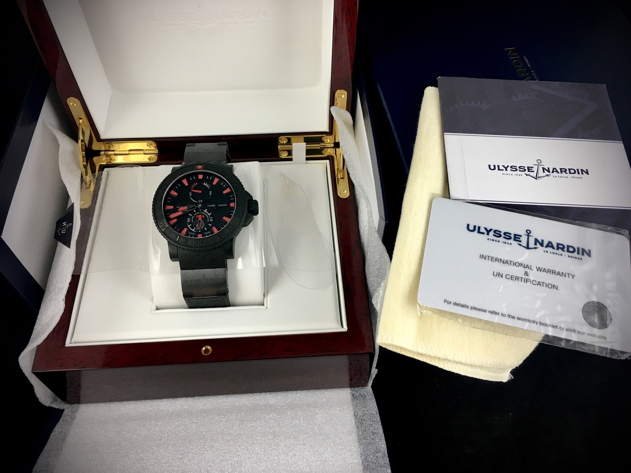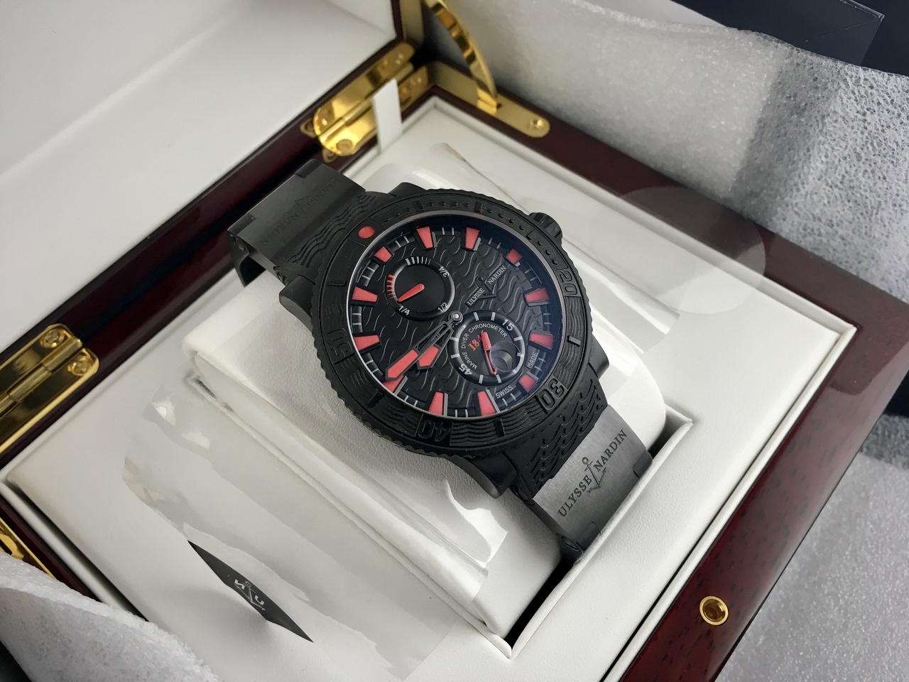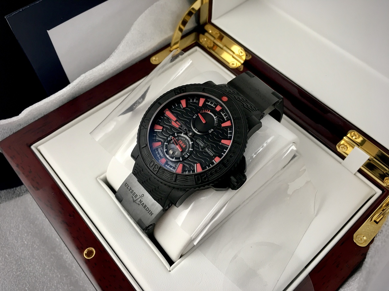 Предлагаю к продаже Ulysse Nardin Marine Diver Black Sea 263-92-3C , замечательные часы от всемирно известной и уважаемой мануфактуры! Стильные и дерзкие, яркие и узнаваемые, эти красавцы в инновационном стальном корпусе покрытом каучуком, явно не лишены харизмы! Да что говорить, от этого брутального 45,8 мм хронометра просто веет силой и бунтарством! Конечно же весь необходимый истинному гурману функционал: часы, минуты, вынесенная секунда, дата и индикация резерва хода присутствуют! Ну и в качестве бонуса, с этим прибором, вы всегда сможете нырнуть на глубину до 200 мт и достать диковинную устрицу, для своей дорогой спутницы! Ни о таком-ли счастье вы мечтали
