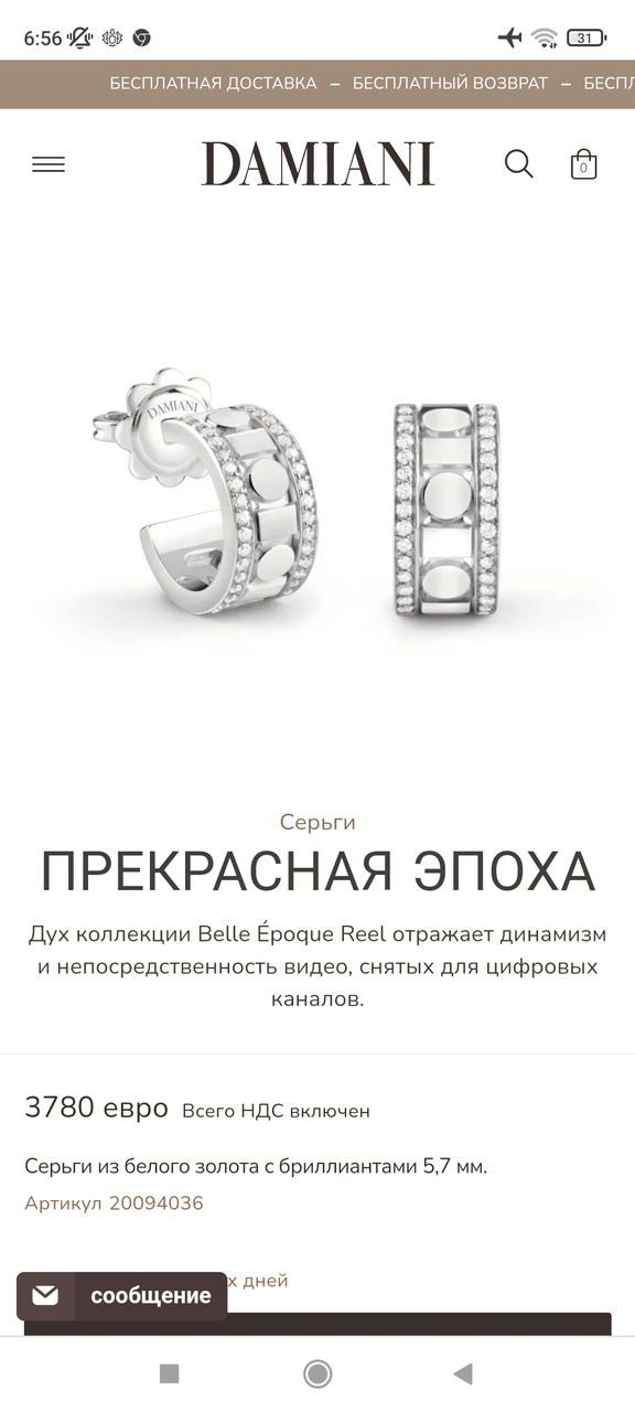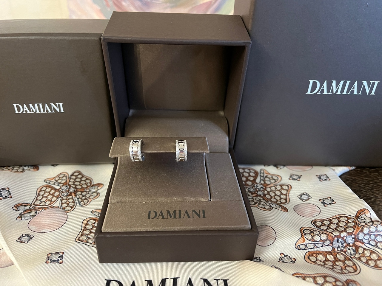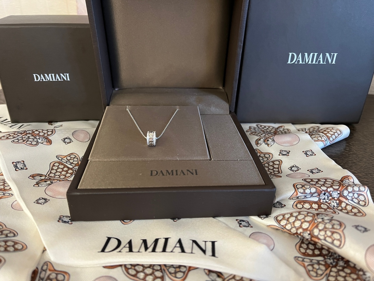 Серьги и подвеска Damiani белое золото и бриллианты