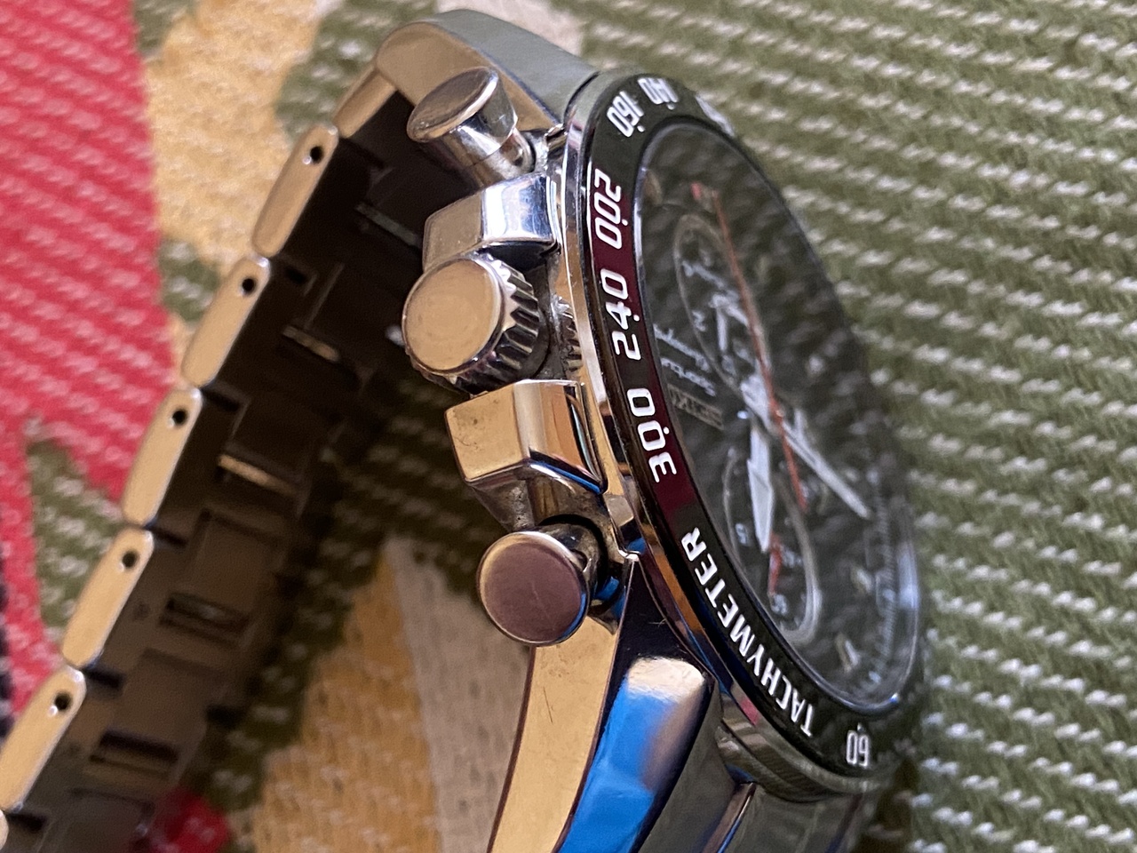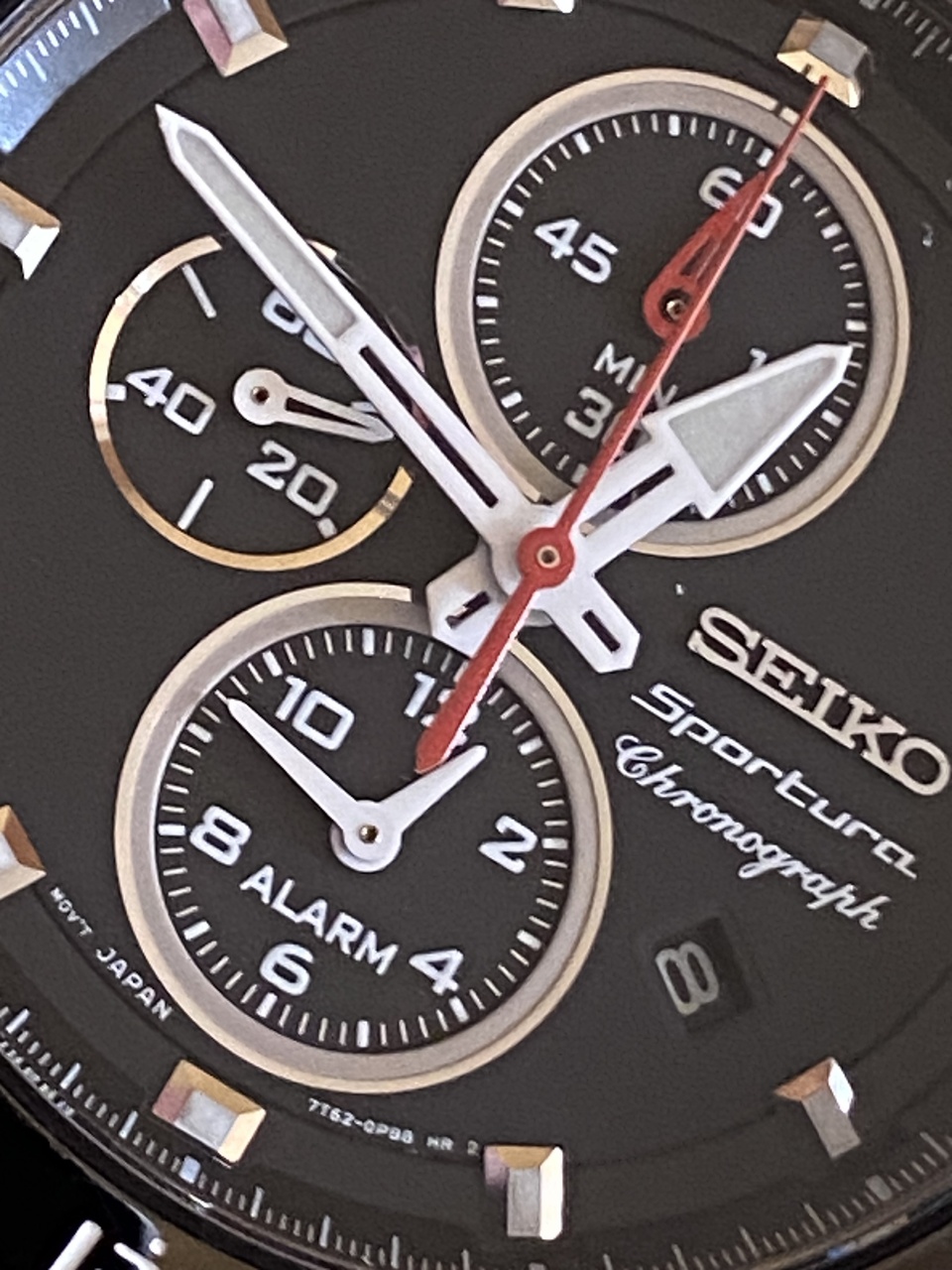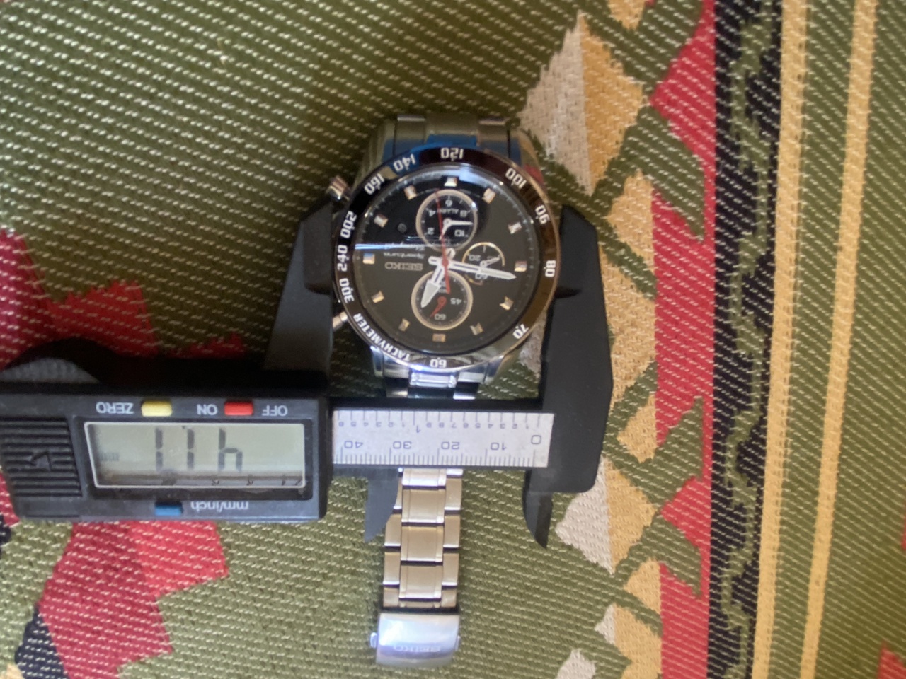 Состояние скорее ближе АА. Классная Сейко старой школы. Сапфир,10 атм, плавный ход секундомера, будильник. Есть коробка. Незаполненная карточка. 2 снятых звена.