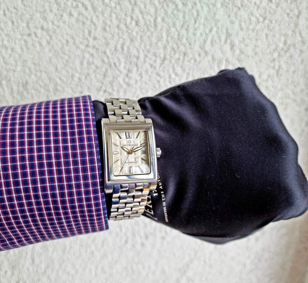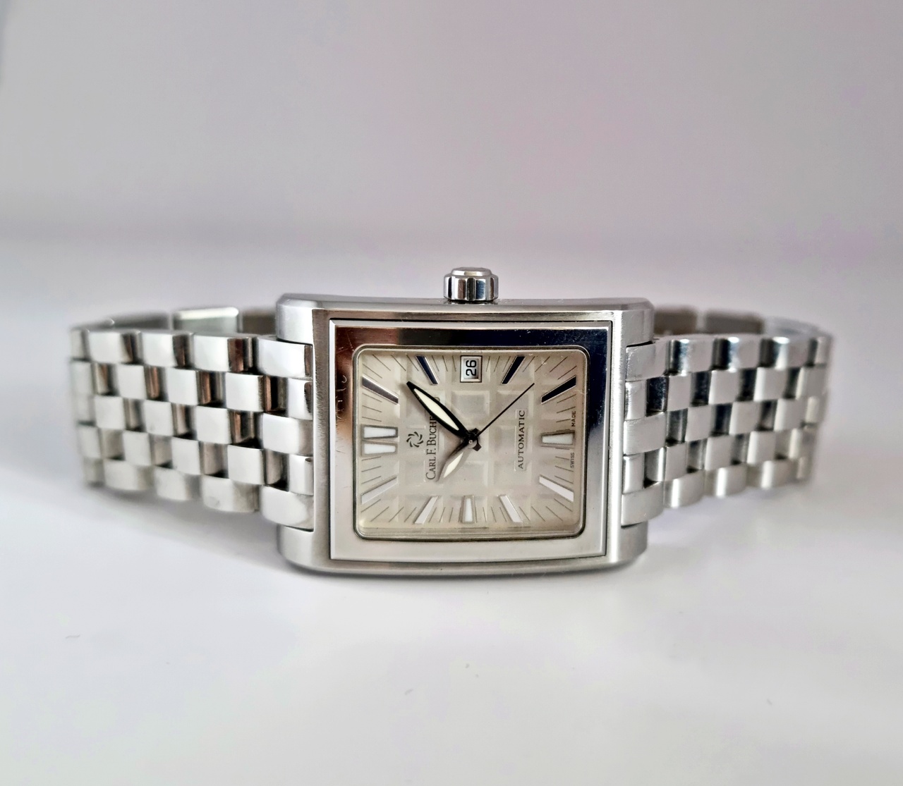 В продаже шикарные прямоугольники от старейшей швейцарской часовой компании Carl F. Bucherer из коллекции Antecedo в размере корпуса 42*29мм и толщиной 10,2мм. Сапфировое стекло, монолитный красивый браслет.