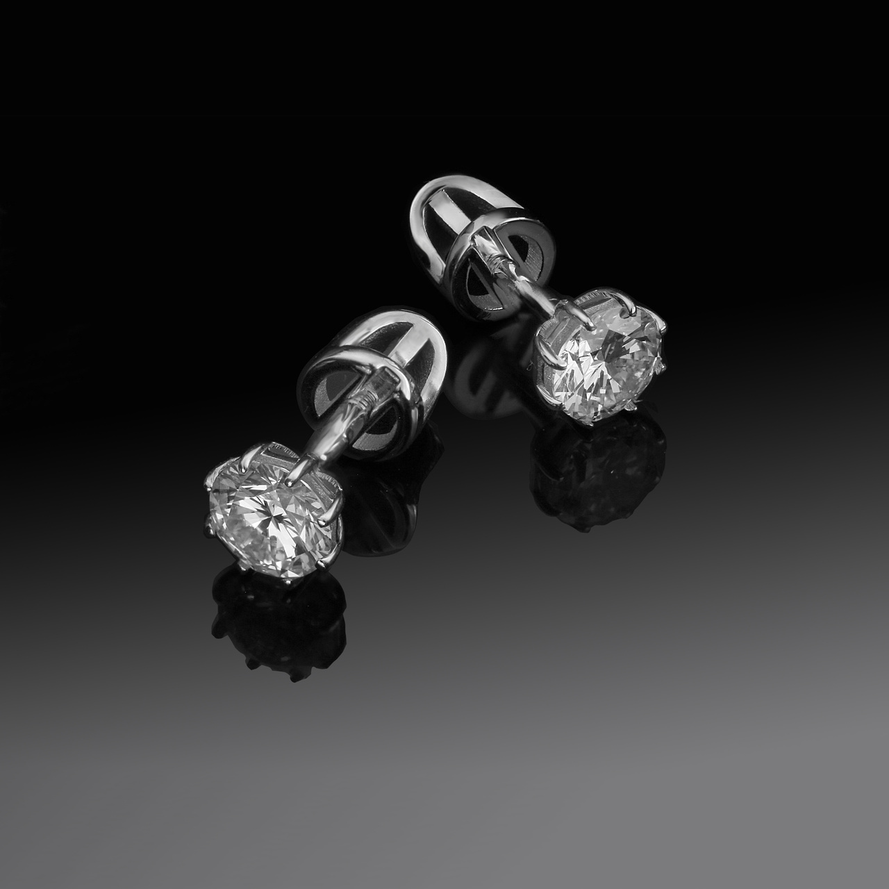 Серьги-пуссеты из белого золота с бриллиантами 0,24 карат (сертификат МГЦ)