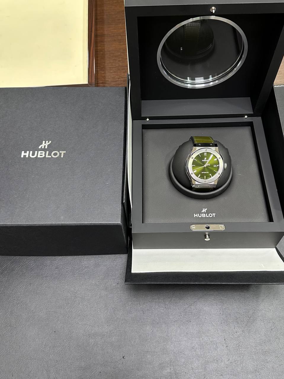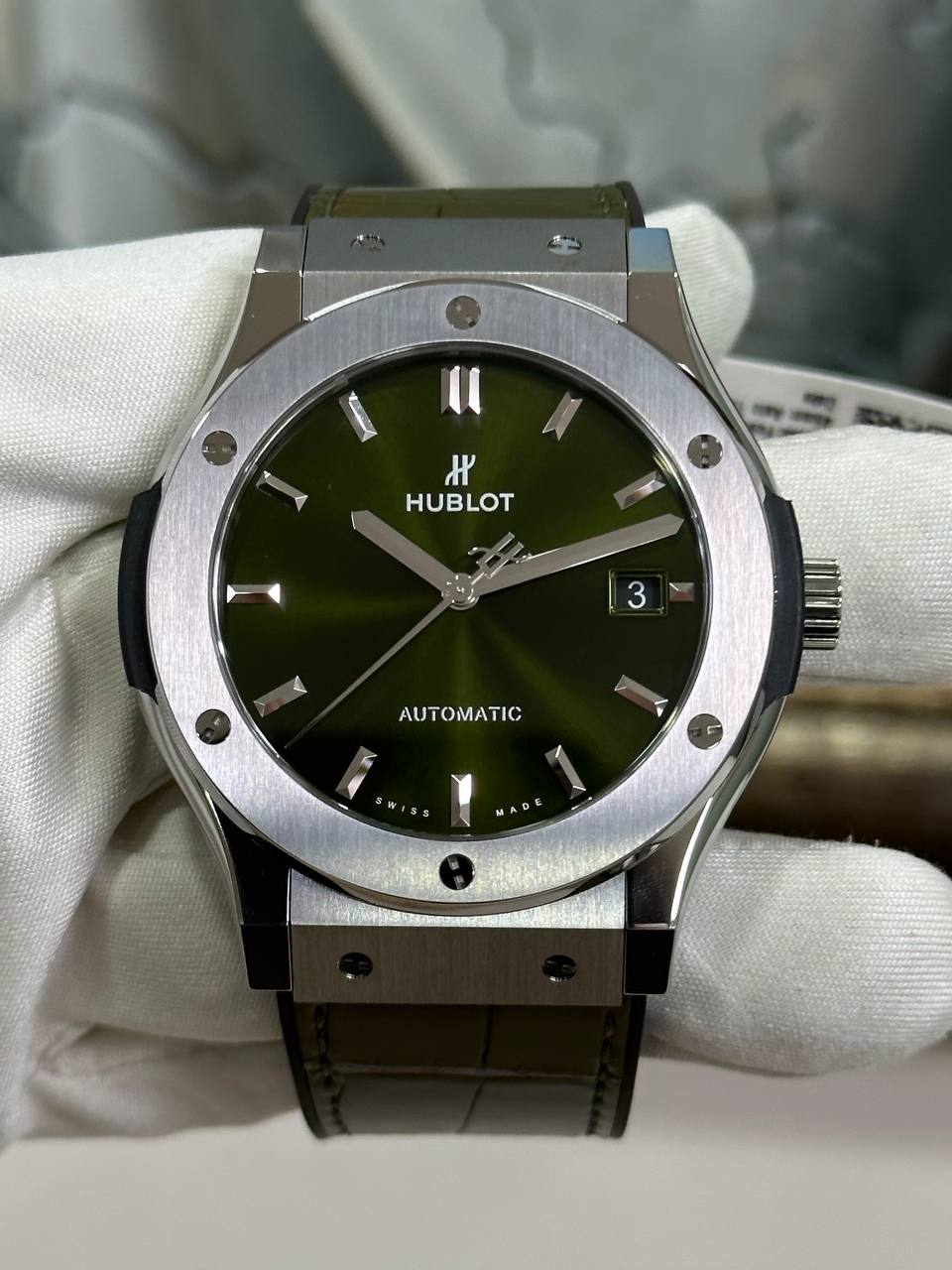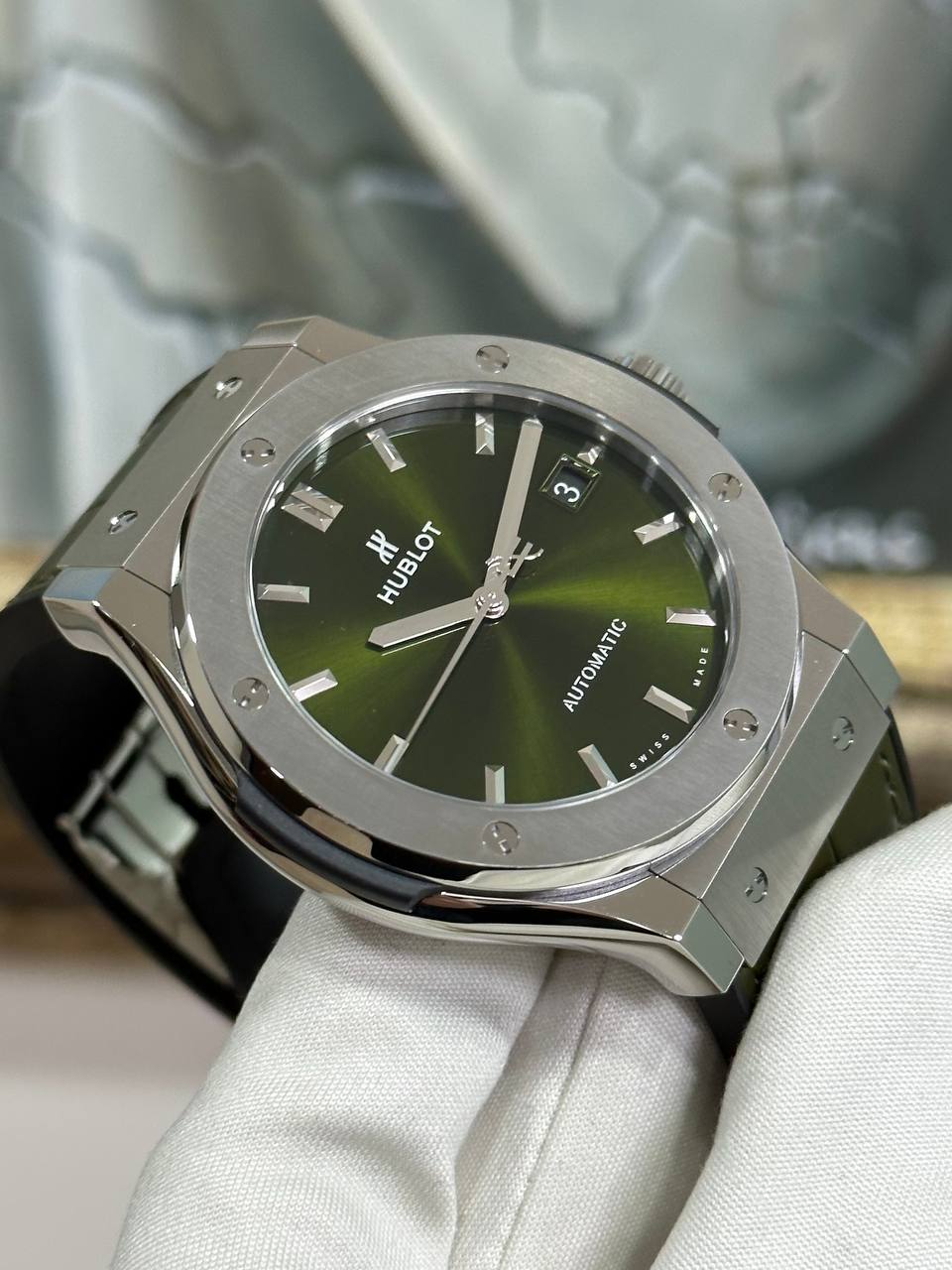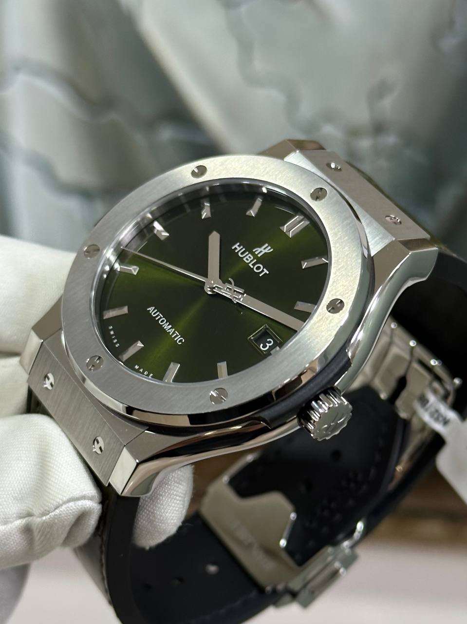 *HUBLOT* CLASSIC FUSION TITANIUM 45 MM 511.NX.8970.LR/ ЗЕЛЕНЫЙ ЦИФЕРБЛАТ/ КОЖАНЫЙ РЕМЕШОК