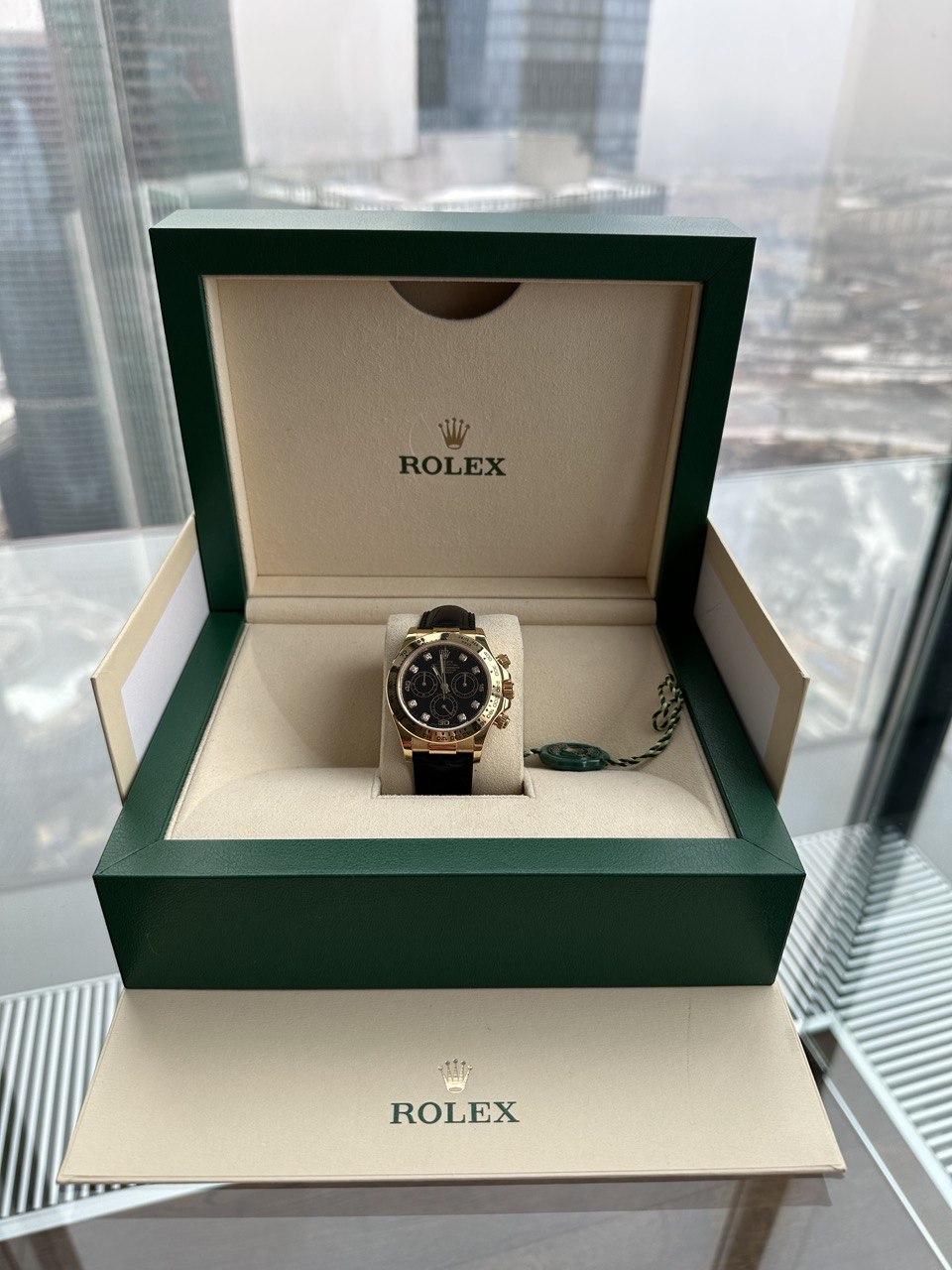 Цвет браслета: черный с раскладывающейся застежкой Rolex из 18-каратного желтого золота