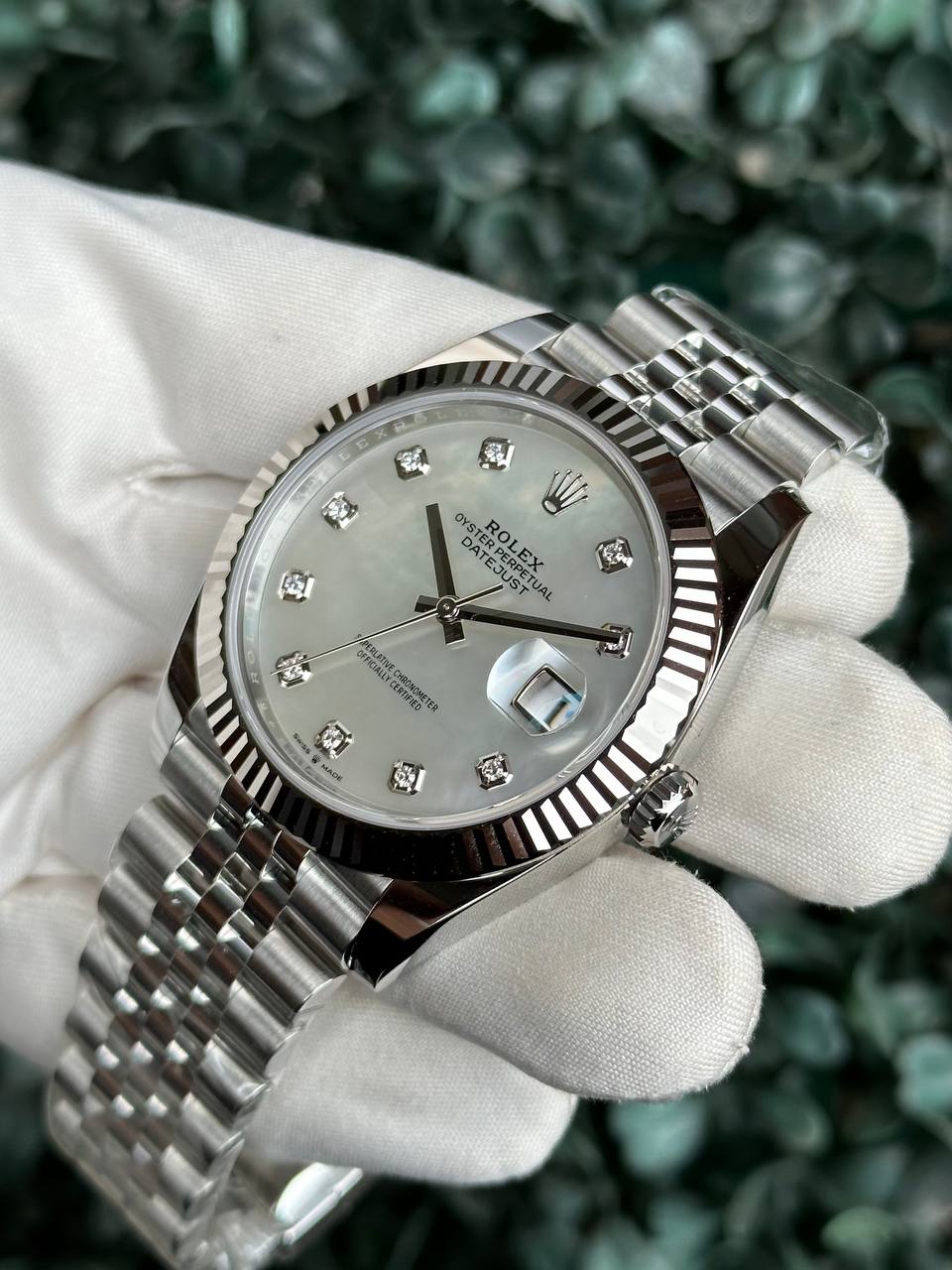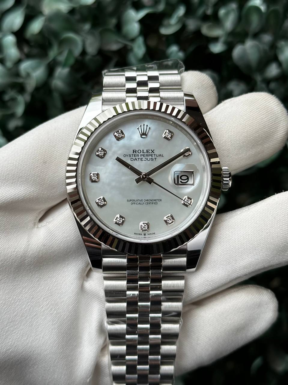 *ROLEX* DATEJUST 41 126334/ПЕРЛАМУТРОВЫЙ ЦИФЕРБЛАТ С БРИЛЛИАНТОВЫМИ МЕТКАМИ/РИФЛЕНЫЙ БЕЗЕЛЬ/JUBILEE BRACELET