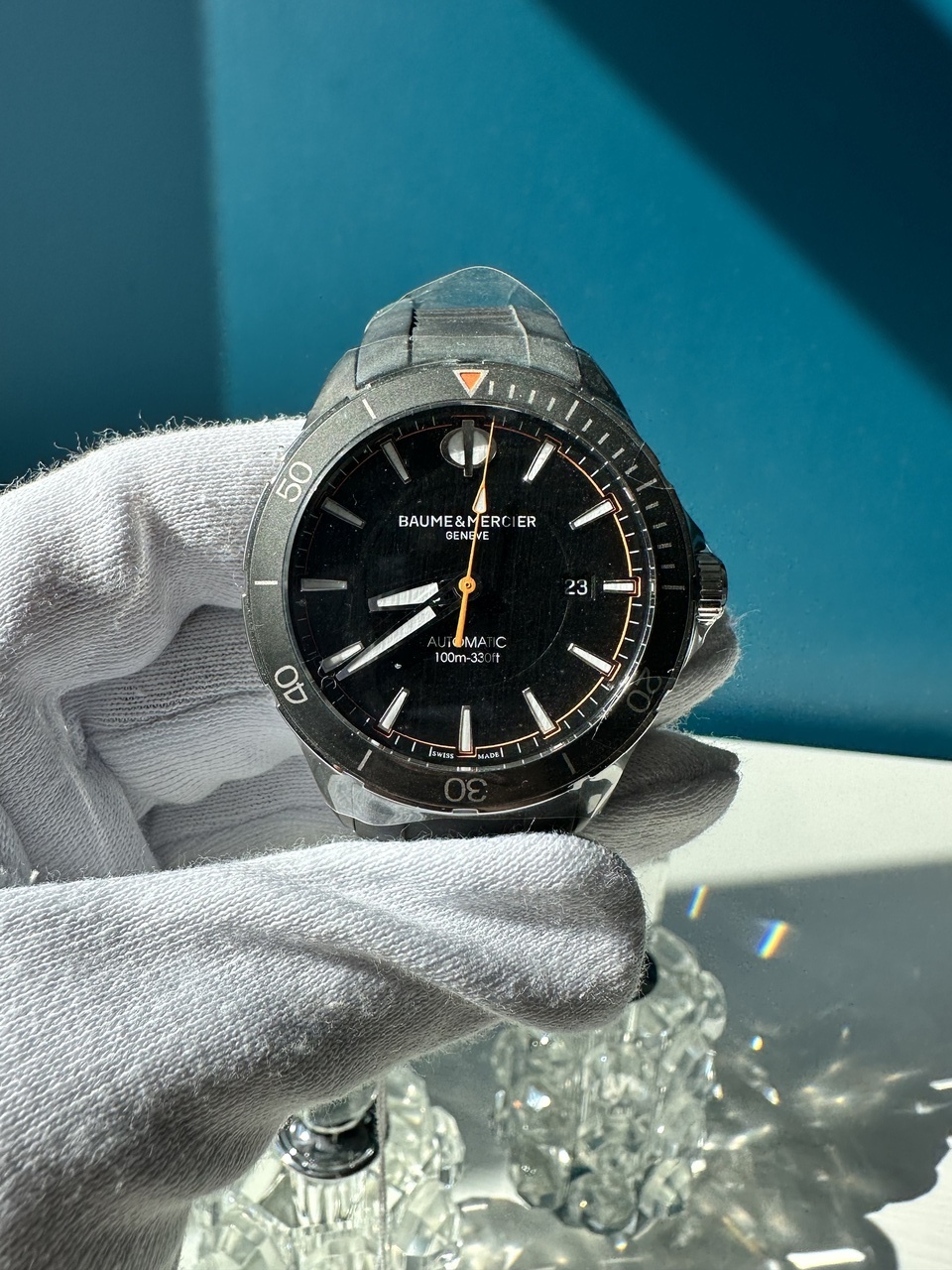 Новые, в заводской пленке, на гарантии. Производство - Швейцария. Элегантные спортивные мужские механические часы Baume & Mercier M0A10339 CLIFTON CLUB AUTOMATIC с системой автоподзавода из коллекции Clifton Club. В механизме 26 камней. Запас хода 38 часов. Вращающийся безель. Стрелки и метки покрыты светонакопительным составом Superluminova. Окно даты в положении "3" часа. Водозащита до 100 метров позволит плавать, нырять и заниматься другими водными видами спорта, не беспокоясь о сохранности механизма. Надежное сапфировое стекло противостоит появлению царапин. Корпус часов изготовлен из стали.