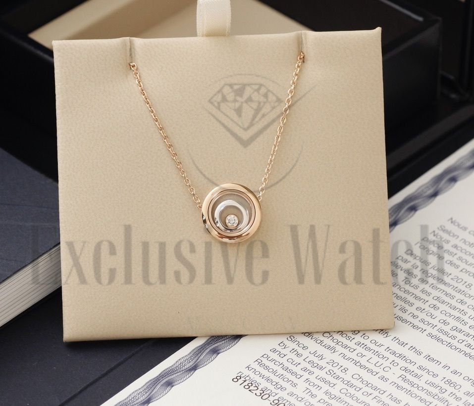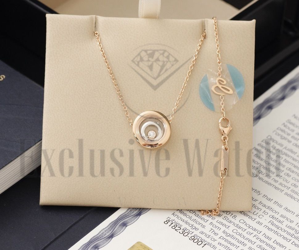 КУЛОН * CHOPARD * HAPPY SPIRIT 818230 - 9001 / РОЗОВОЕ И БЕЛОЕ ЗОЛОТО 18К / ПЛАВАЮЩИЙ БРИЛЛИАНТ