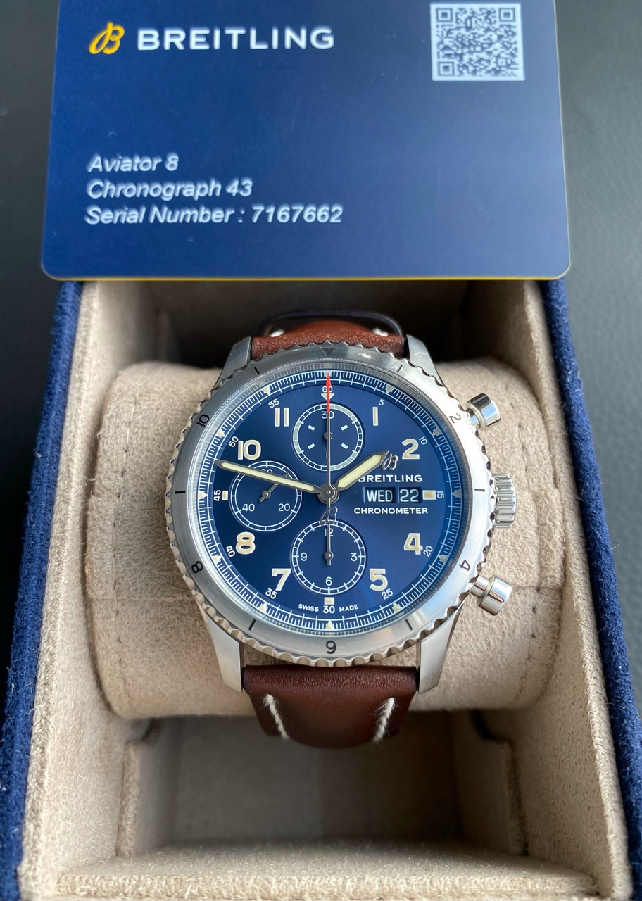 BREITLING Aviator 8 Chronograph 43 Blue Dial. A13316