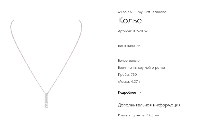 ПОДВЕСКА *MESSIKA* MY FIRST DIAMOND 07520 - WG / БЕЛОЕ ЗОЛОТО 18К / 1 ПЛАВАЮЩИЙ БРИЛЛИАНТ / БРИЛЛИАНТЫ КРУГЛОЙ ФОРМЫ ОГРАНКИ