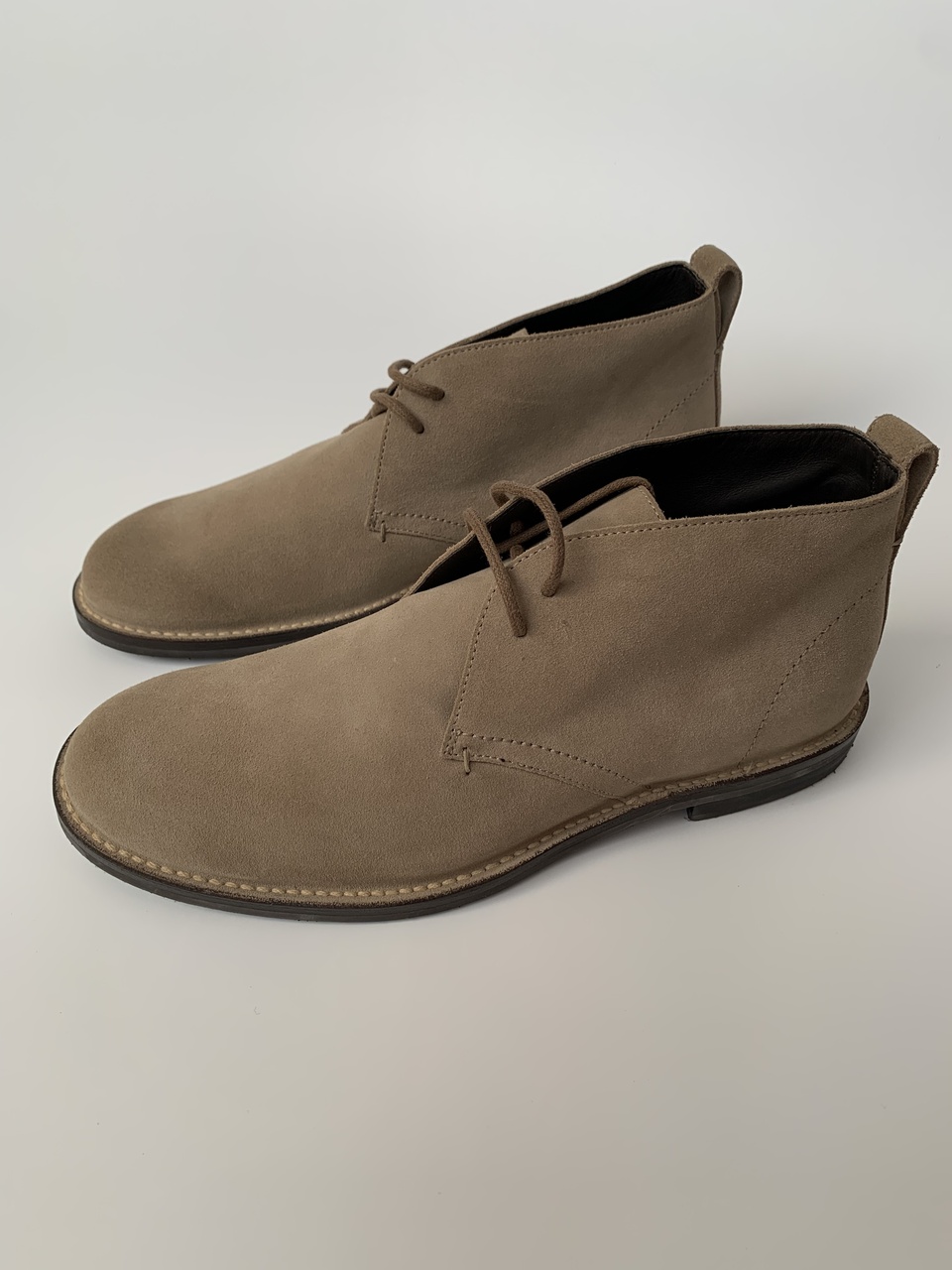 Элегантное сочетание классических и современных материалов характеризует эти новые полуботинки — универсальную модель, подходящую для самых разных случаев.Для пошива дезертов использовали мягкую тонкую замшу с характерной бархатистой фактурой,которая контрастирует с легкой подошвой.