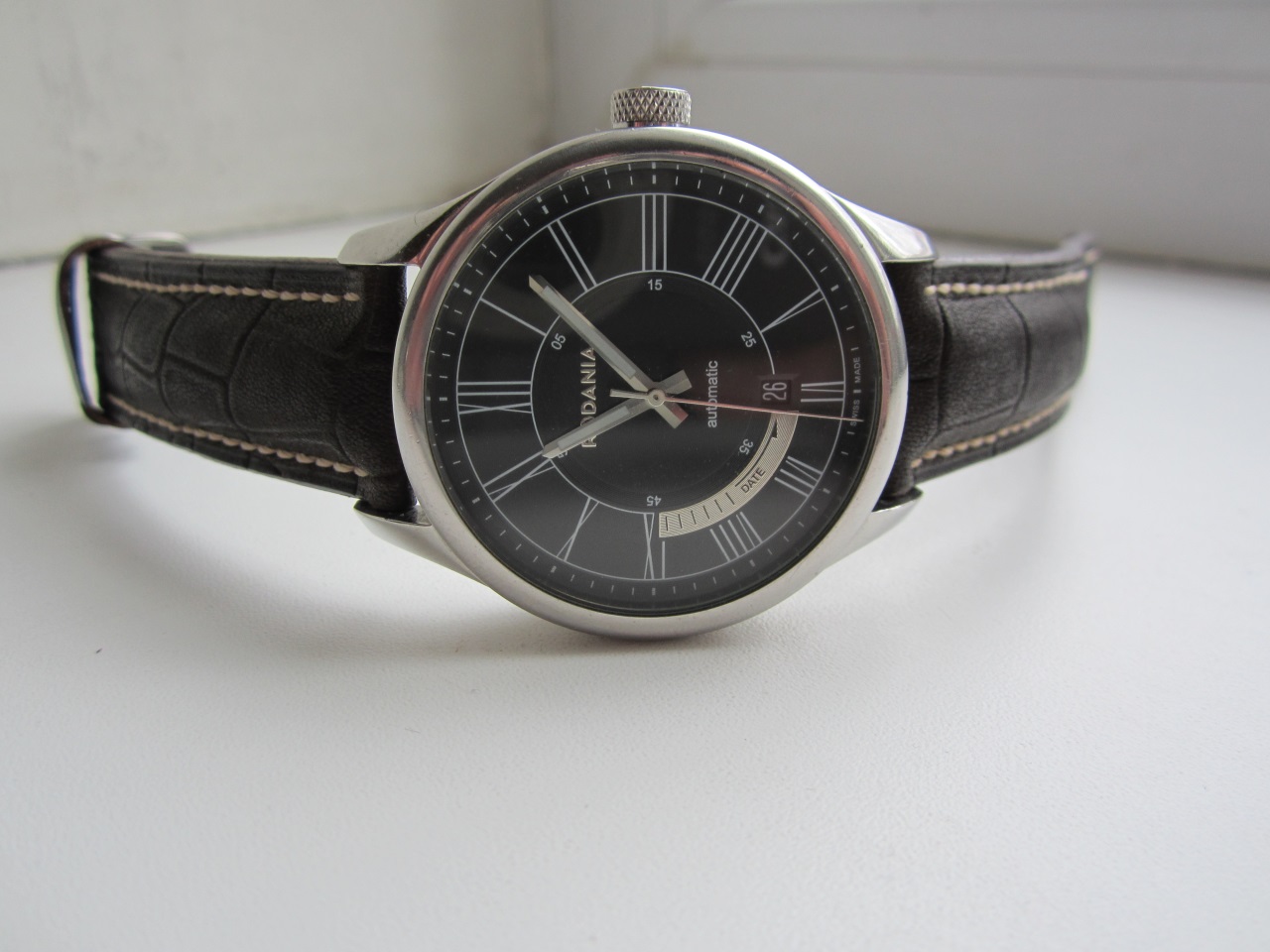 Б/у, но в отличном состоянии (микроцарапки по корпусу), B- поставил только из-за ремешка. Без комплекта. Ход в норме. Новый ремешок из натуральной итальянской кожи растительного дубления темно-коричневого цвета, прошит бежевой нитью, ручной работы.