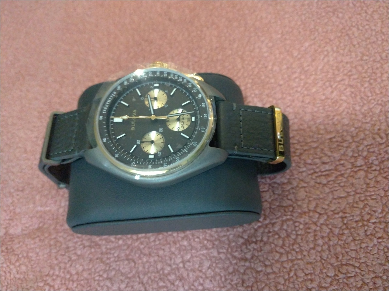 В продаже часы Bulova Lunar Pilot Chronograph Limited Edition 98A285, выпущенные к пятидесятилетию миссии Apollo 15 1971 года серией 5000 экземпляров.
